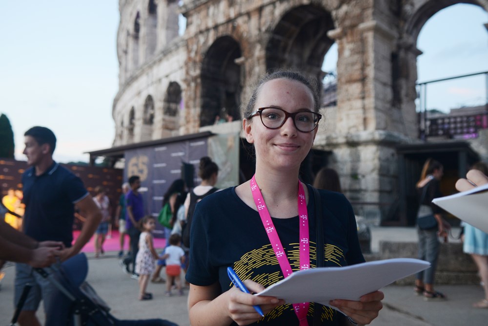 Volonterka Iva veli da joj je tu predivno. Ona je netom završila treći razred srednje škole, dolazi iz Čakovca, inače u kinu Valli uvodi goste u dvoranu, a pomaže i radom na istraživanju za jednu doktorsku radnju o festivalu dijeljenjem anketnih upitnika.
