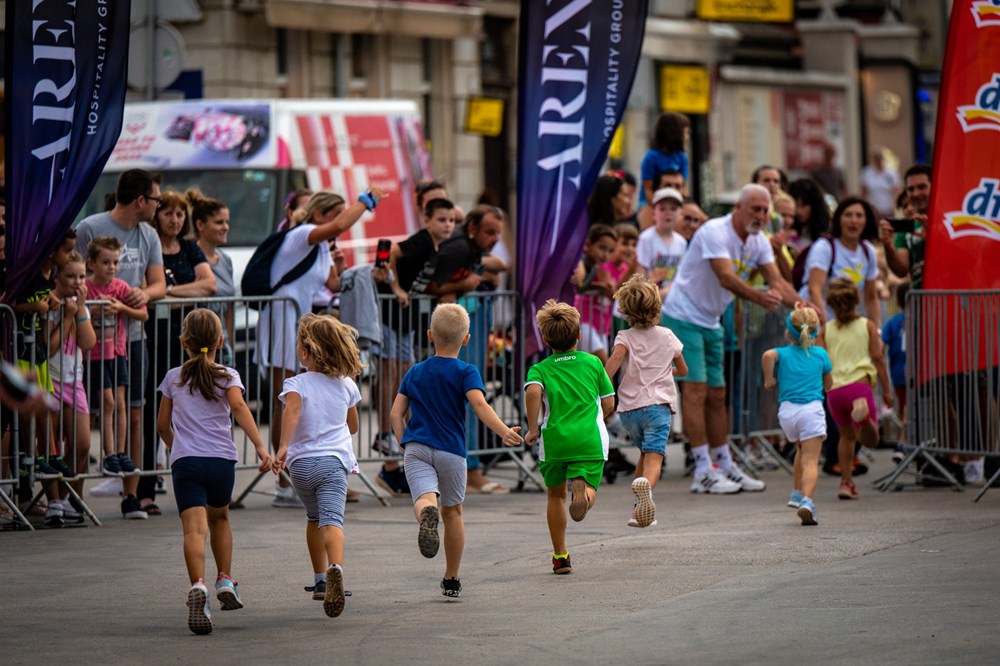 Arena Hospitality Group je partner u organizaciji dječjih utrka koje su se ponovno vratile u Pula Marathon. Svojim sudjelovanjem u organizaciji nastojali su animirati sugrađane te da se najmlađi trkači prijave u što većem broju. Bio je ovo večeras pravi doživljaj za cijelu obitelj, djecu koja su srčano grabila svaki centimetar i borila se za što bolje rezultate, za obitelji koji su u velikom broju bodrile svoje malene trkače te za publiku i posjetitelje okupljenje ispred Arene koji su glasno podržali ove male borce. Trčalo se večeras u 5 utrka, i to: utrka za djecu od 3-4 godine, zatim 5-6 godina, 1.-2. razred, 3.-4. razred i zadnja kategorija je bila za djecu koja pohađaju 5.-6 razred. Djeca su trčala od 150 metara do 250 metara. Održan je i vrlo veseli popratni program uz animaciju, puno glazbe i prigodnih nagrada. Start i cilj dječjih utrka bio je na području ispred Arene. Iako pobjeda nije osnovni cilj dječjih utrka, donosimo u nastavku imena tri najbolja po kategorijama.