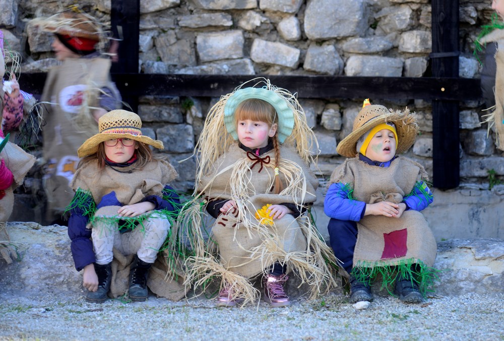 Tako mali, a već penzioneri, komentirali su uz smijeh nazočni masku DV Tittići, koji su se, naime, prerušili u penzionere, a vesela janjad bili su mališani iz Dječjeg vrtića "Marija Petković". Polaznici Topolina postali su ni manje ni više nego Mići guardiani de boška in Grega, a polaznici iz Dječjeg vrtića Slatki svijet Domaći iz Šume Striborove. Požar u šarenoj veseloj šumi utjelovili su polaznici Oblutka, a veseli zubići bili su mališani iz Veseljka. Što drugo negoli veseli pingvini, postala su djeca iz DV Pingvini, a kravate su postali polaznici Cipelića.