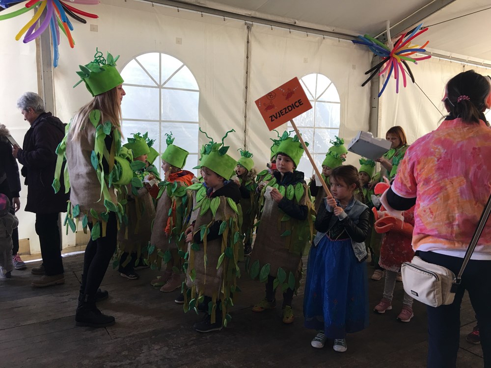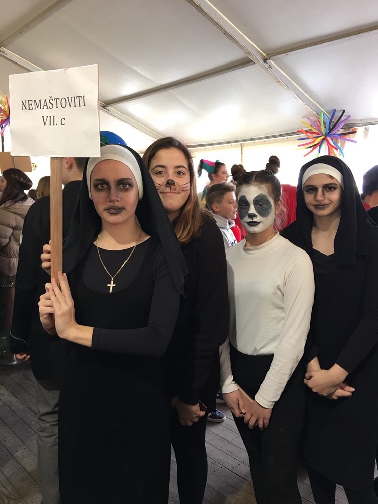 Osnovnoškolci su sa svojim profesoricama pripremili i prigodnu dramsku izvedbu, a zabavljale su ih i animatorice iz Zemlje zabave. Svi prisutni mogli su vidjeti zanimljive kreacije i maštovitost, a svaka je skupina nosila i prigodni transparent sa zanimljivim porukama pa smo tako imali prilike susresti "nemaštovite", "kraljevstvo afera", "uzorne učenike", "šarene koze", a bili su tu i brojni drugi od malenih "bubamara", "ribica", "šišmiša", "navijača", "zvjezdica", "prometnih znakova", "časnih sestri", "vještica", "klaunova", "zarobljenika", "pankera" i ostalih.