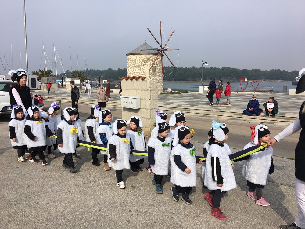 Djeci su podijeljene krofne, čaj i pokloni, a svaka skupina je na svoj način doprinijela karnevalu te su svi skupa u veselju i zajedništvu ispratili peto godišnje doba u općini Medulin. (A. LONČARIĆ)