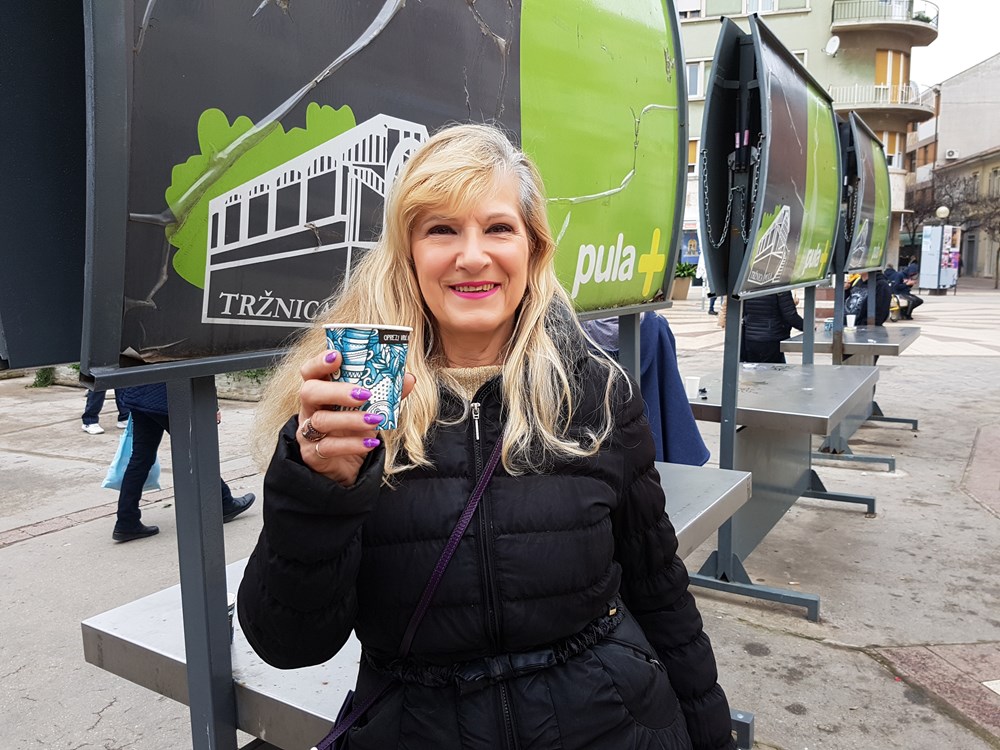 Jadranka Delmoro s prijateljicom ispija kavu nešto dalje, uz prazan štand.