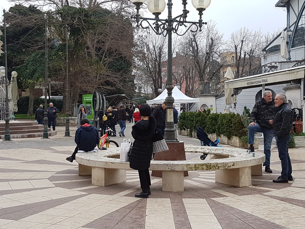 Sve je isto kao i prije korone. Ili gotovo isto. Kava se više ne pije u, nego ispred "Milana." Ako već nije bolja, u kiosku je jeftinija. Ljudi se grupiraju u dvojke i trojke i onda strateški raspoređuju na kamene klupe i štandove kod tržnice.