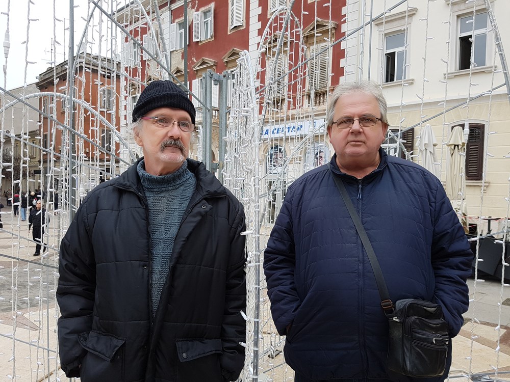 Dragan Brajuh i Valter Vukman zauzeli su poziciju kod fontane ukrašene svjetiljkama koje će zasjati navečer i to je znak da se bliže nekakvi blagdani i Nova godina. Nju, prisjetimo se odluke Stožera civilne zaštite, ne smije slaviti više od deset ljudi na jednom mjestu, iako to nitko neće provjeravati tako što će upadati po kućama. Naše protagoniste to ne brine jer "neće nikamo za Novu".