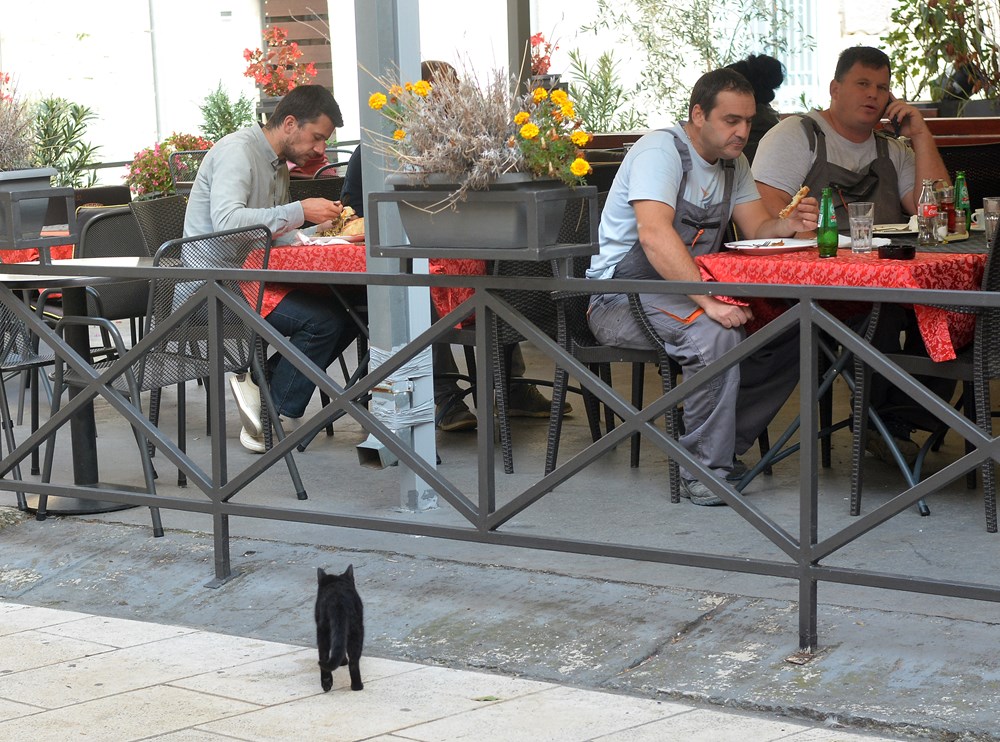 U obližnjim objektima terase su već zatvorene. Nema turista, pa nema ni mačaka.