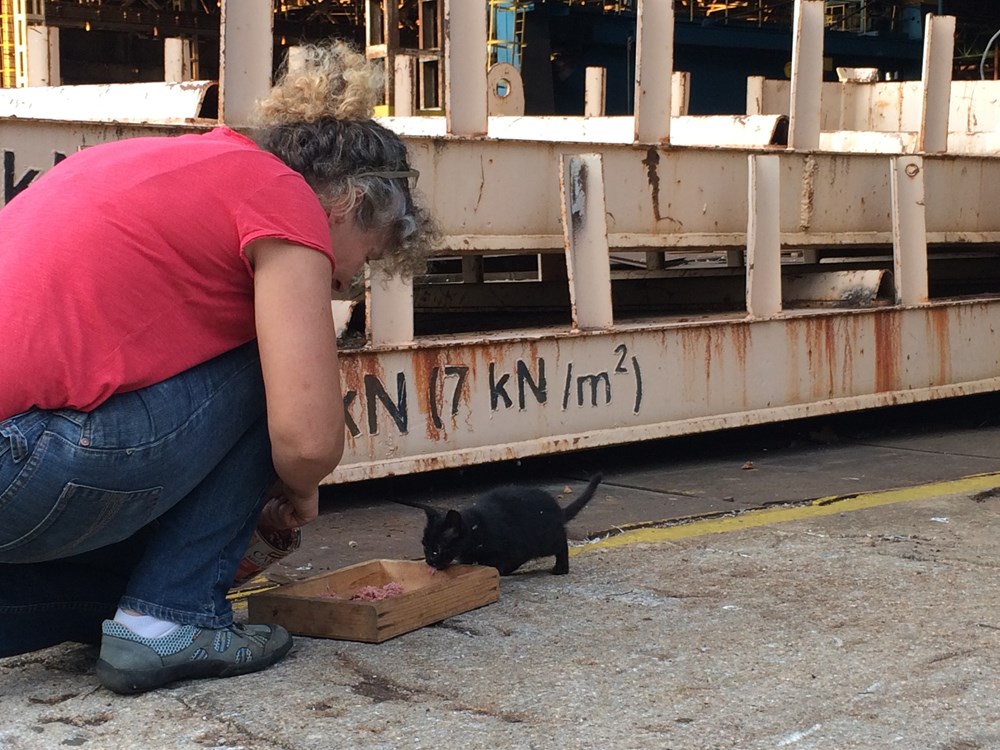 Tri puta tjedno, i tako već više od godine dana, Dijana Bekić iz udruge Fido obilazi gladne i napuštene Uljanikove mačke. Ponekad joj pomaže volonterka Marina. Autom, s punim gepekom hrane, gotovo dva sata obilaze mačke na 13 punktova, od Sahare do Otoka, duž sablasno praznih uljanikovih hala. Mic, mic, mic..., poziva Dijana, a mačke joj trče ususret čim čuju automobil. Većina ih je nekada bila nečija ili barem svačija. Radnici su ih hranili, skrbili se o njima. No, otkako nema radnika, one nemaju "svoje ljude", samo Dijanu. Ne mogu, poput uljanikovaca, u Italiju ili Irsku. Ostaje im samo da pređu cestu - do Foruma ili prema bulevaru.