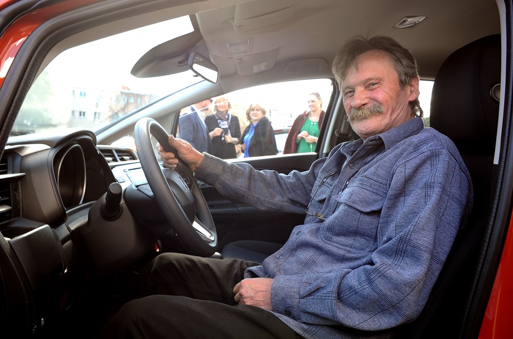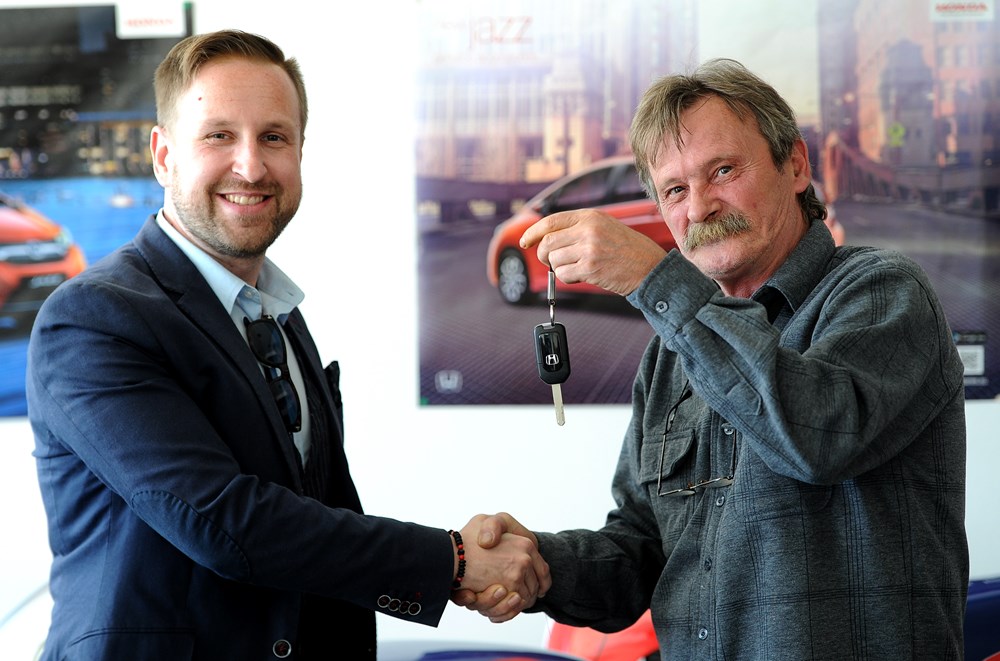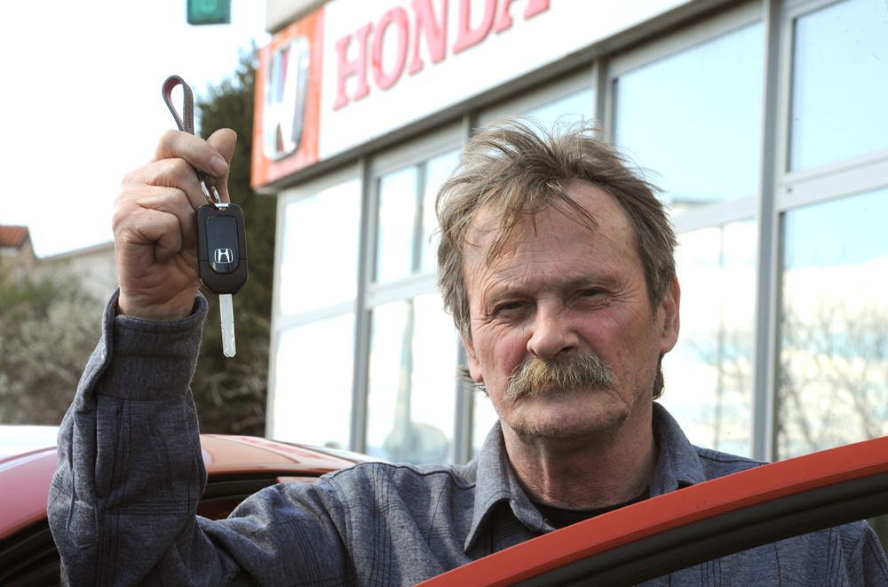Edi Serbus, najsretniji čitatelj nedavno završene nagradne igre Glasa Istre, danas je u riječkom salonu Ruting d.o.o. preuzeo Hondu Jazz, atraktivan i vrijedan, pravi obiteljski automobil primamljiv svim generacijama.