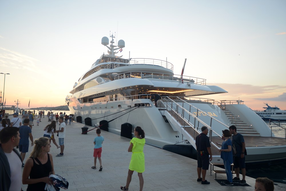 Poglede prolaznika na pulskoj Rivi u utorak predvečer plijenila je elegantna jahta O'Ptasia. Ova 85-metarska elegantna ljepotica modernog dizajna dovršena je i isporučena prošlog mjeseca, te je dio flote Golden Yachts, a suvremeni dizajn eksterijera i interijera napravio je Studio Vafiadis. Zanimljivo je da se O'Ptasia našla u društvu 200 najvećih superjahti na svijetu.