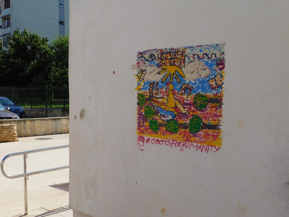 Drugi je grafit gladijatora po predlošku pulskog studija Undertoon na zgradi na Trgu kralja Tomislava, za što je već i pripremljen prazni zid. Za još jedan mural traži se lokacija, a preko Instagrama grupe Robots for Humanity prikupljaju se prijedlozi crteža - i stižu konstantno sa svih strana. Neslužbeno saznajemo da su stanari zgrada pristali na ove grafiterske akcije, a još se čekaju i sve potvrde gradske uprave.