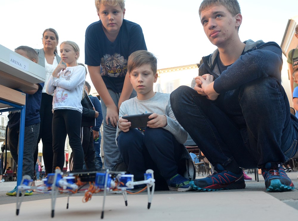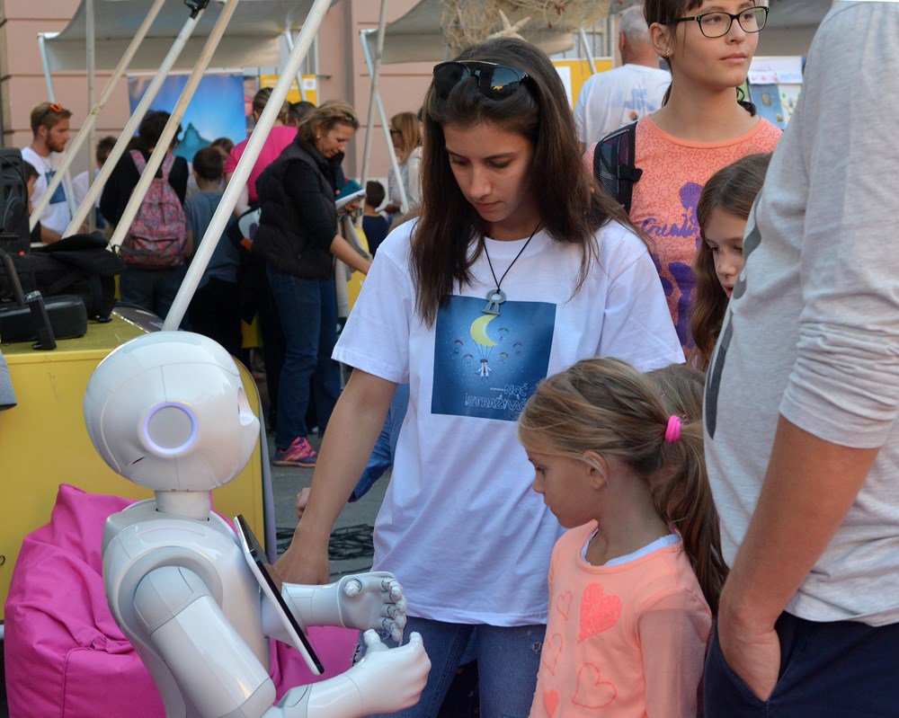 Pulsko Sveučilište Jurja Dobrile predstavilo se večeras na pulskom Forumu kao jedan od 18 partnera u sklopu projekta Europska noć istraživača, koji je izazvao velik interes, prije svega najmlađih Puljana. Iako se očekivalo da će najveće zanimanje izazvati humanoidni robot Pepper, mnoštvo se tiskalo oko svih deset štandova, odnosno znanstvenih postaja. Djeca su se željela fotografirati s Pepper, zanimalo ih je što im može poručiti, na koji se način kreće, no jednako veliku znatiželju pobuđivali su maleni roboti koji su poprimi oblik transformera, paukova, kugli, a po želji i otplesali Gangam style, pjesmu korejskog izvođača Psyja koja je prije nekoliko godina bila svjetski hit.