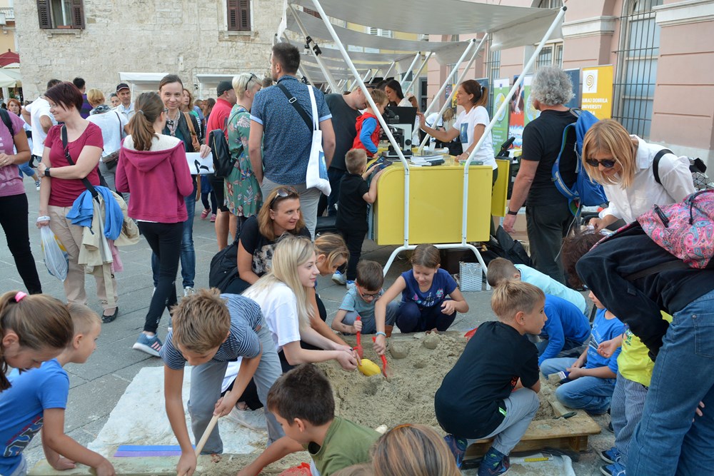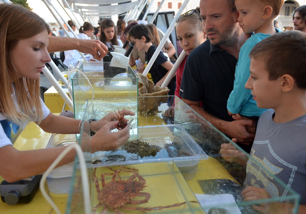Moglo se upravljati robotom i odigrati mini trku na prstenac. No, jednako zanimljivo bilo je i na ostalim štandovima na kojima se učila glagoljica, japansko pismo, poučavao hrvatski i japanski jezik, dok su u dva pješčanika djeca pronalazila svoje prve iskopine, ostatke grnčarije, uz pokoji čokoladni zlatnik. Neven Iveša, asistent na Odjelu za prirodne i zdravstvene studije na pulskom sveučilištu, zajedno sa studentima volonterima, znatiželjnicima je neumorno objašnjavao kako živi premanturska rakovica i zbog čega je na rubu opstanka. No, u akvariju na Forumu našle su se i druge zanimljive vrste, među kojima smo uočili vrlo agresivnog plavog raka koji je u sjeverni Jadran došao balastnim vodama iz Atlanskog oceana i tu se nastanio, ugrožavajući autohtone vrste.