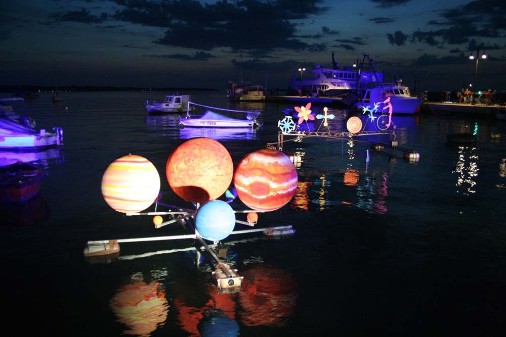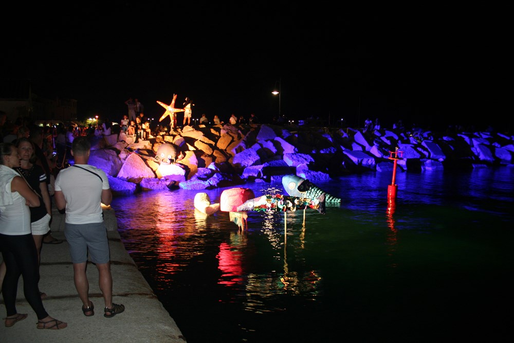 Fešta se trebala održati proteklu nedjelju, ali je zbog lošeg vremena odgođena za četvrtak, ali su i sinoć sa zapada prijetili oblaci. No, ovaj put nisu mogli naškoditi dobrom ugođaju - na radost brojne razdragane djece, ali i turista koji su fotoparatima nastojali u noći ovjekovječiti razne igre boja i pokreta, instalacije na površini mora, na barkama i na obali.