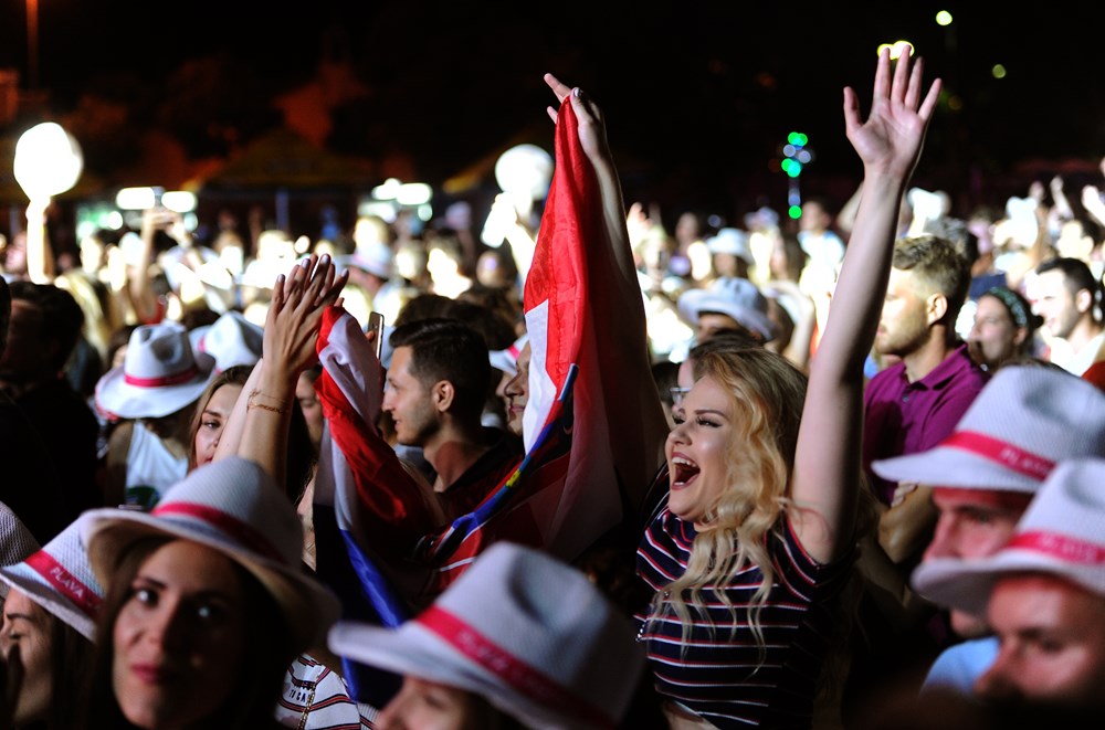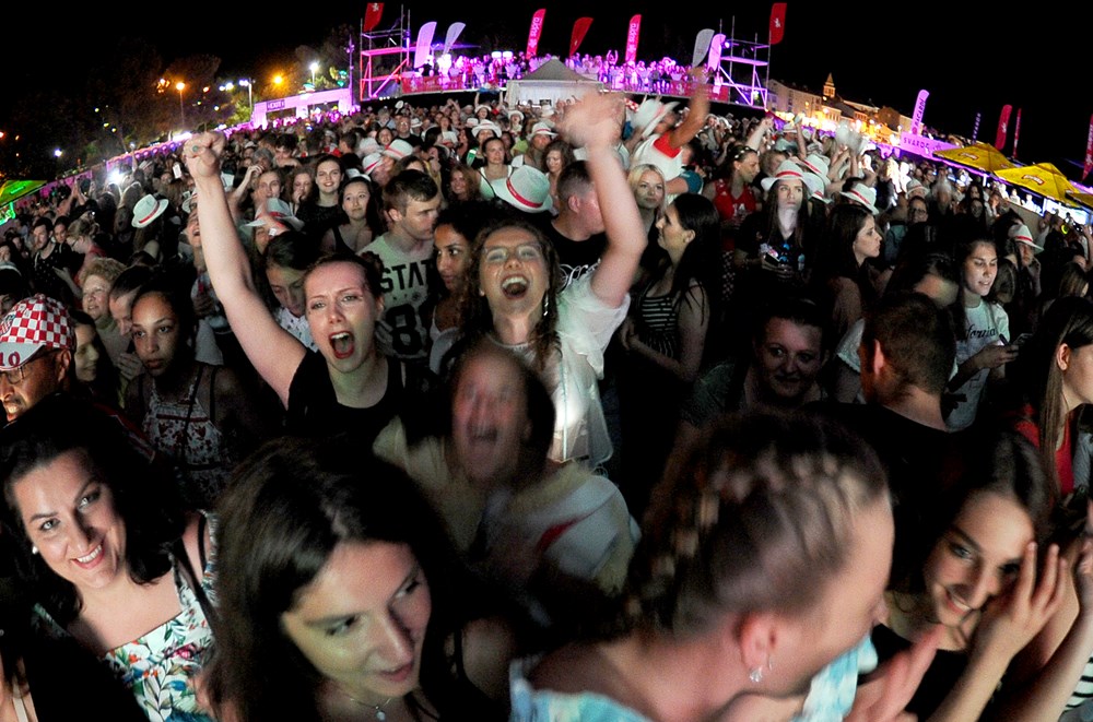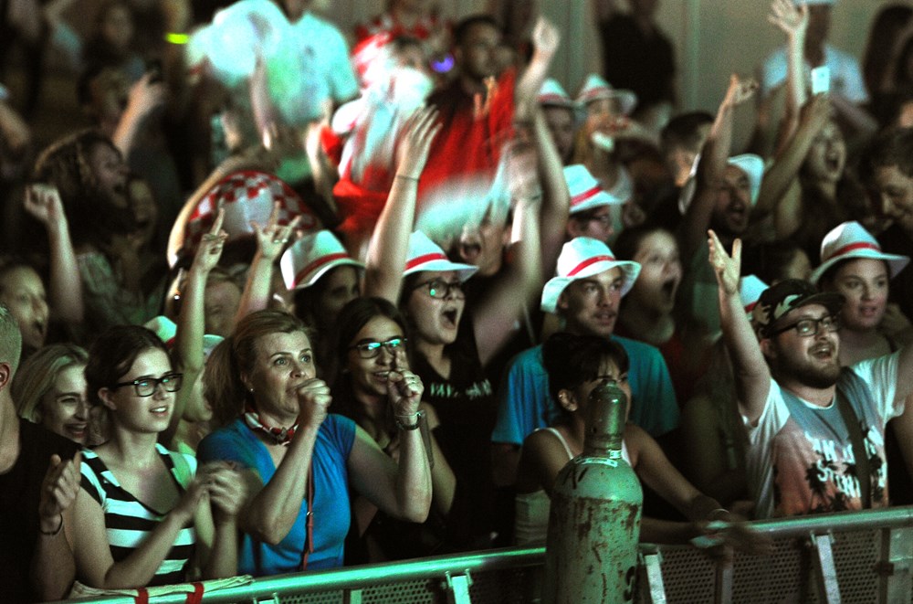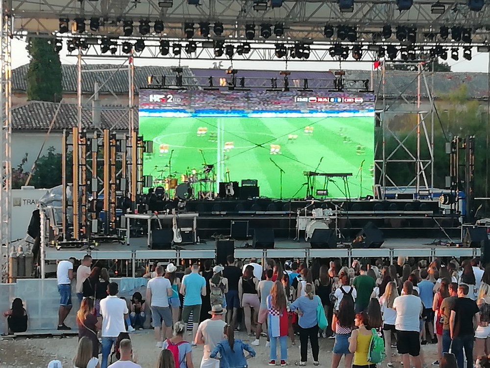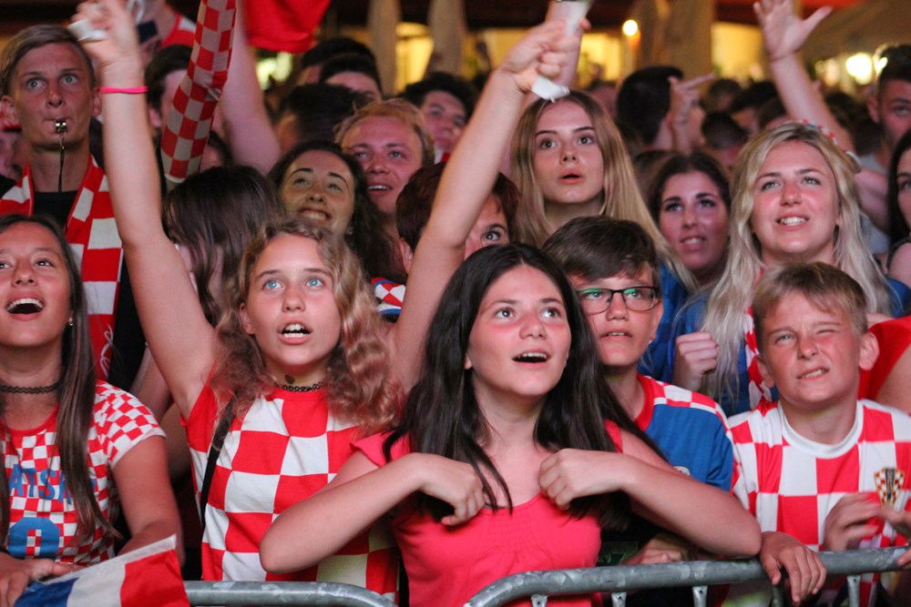 Premijerni hrvatski nastup planetarno popularne britanske pjevačice kosovskog porijekla Rite Ora na Rise Up festivalu na porečkoj Peškeri, uza sve oduševljene fanove, unaprijed je obilježen pa i zasjenjen četvrtfinalnom utakmicom između Hrvatske i Rusije na Svjetskom nogometnom prvenstvu. Toga su unaprijed bili svjesni i organizatori, koji su na glavnoj festivalskoj lokaciji osigurali, kako se uoči festivala pohvalio porečki gradonačelnik Loris Peršurić, "najveći ekran u Istri" (10 x 5 metara), na kojem je publika festivala pratila veliku bitku za ulazak u elitni krug četiri najboljih reprezentacija na svijetu. (B. PETROVIĆ, Z. A., snimili Filip ŠKATAR i Milivoj MIJOŠEK)