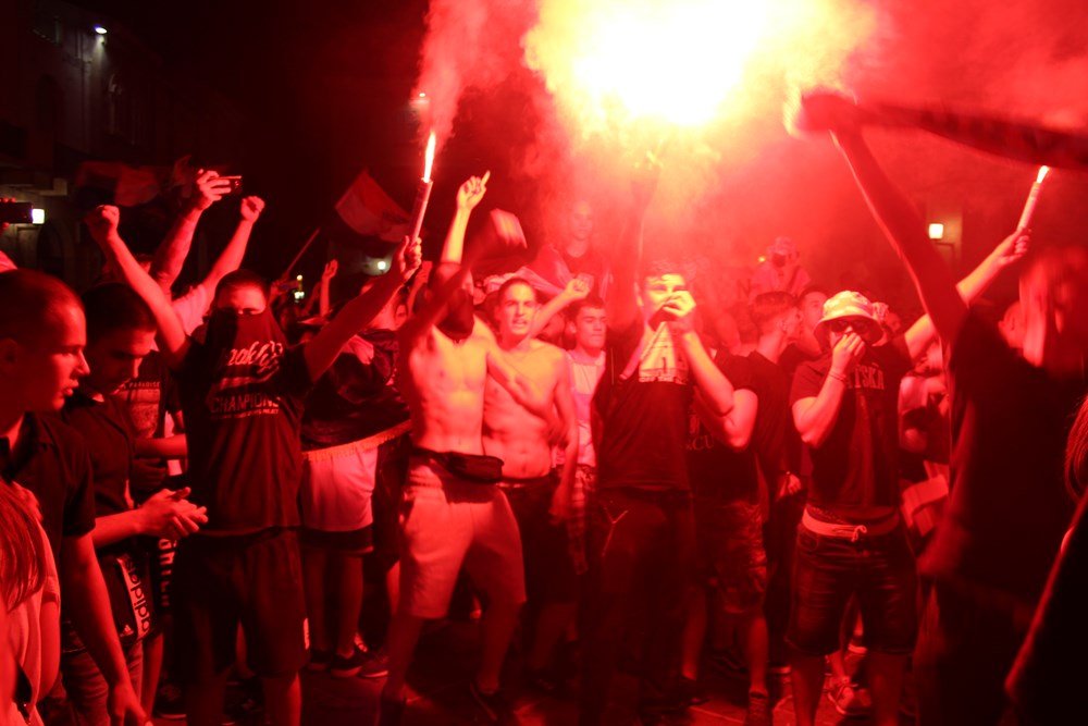 Pljeskalo se, skakalo u zrak, palilo baklje, no bez većih ekscesa, budući da se sve odigravalo pod budnim okom zaštitara, ali i policije i vatrogasaca. Forum je prvi puta gorio kada je Kramarić dao prvi gol i poništio pogodak Čeriševa.