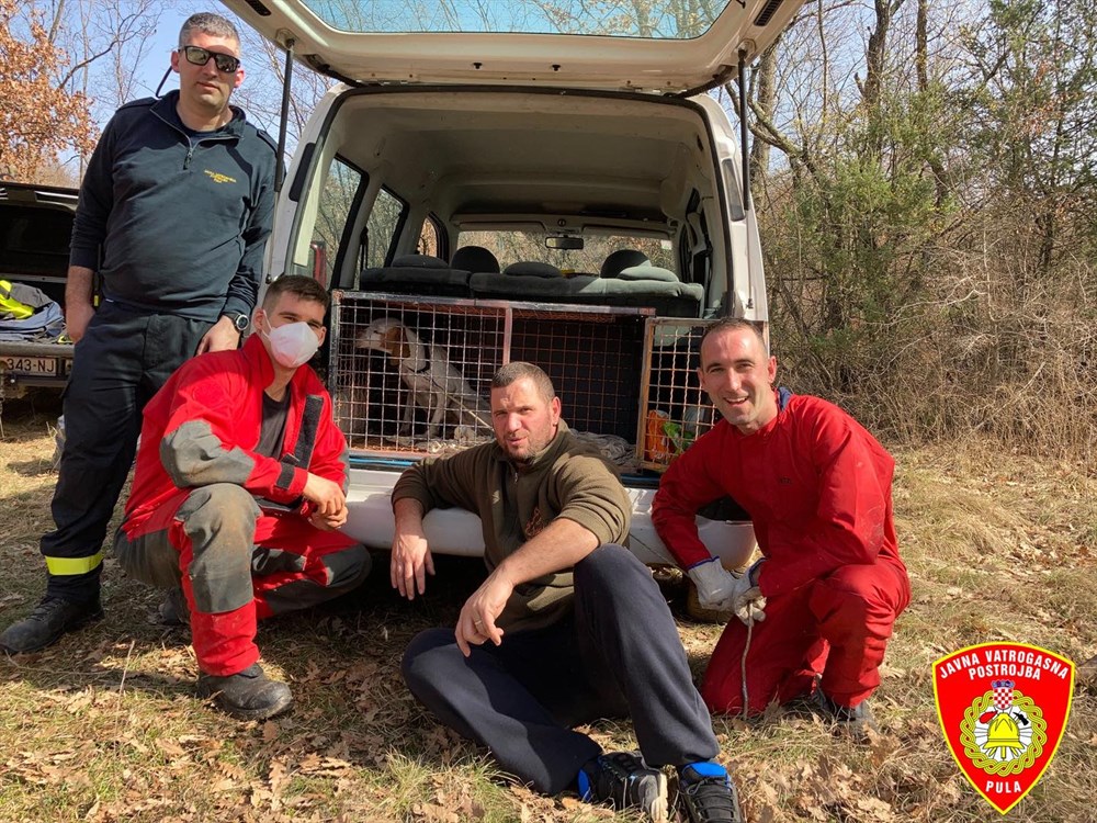 Jadan je pas imao sreće u nesreći, jer ga je slučajni prolaznik čuo kako cvili i laje u srijedu ujutro. Odmah je pozvao pulske vatrogasce i njih četvoro su krenuli u akciju.