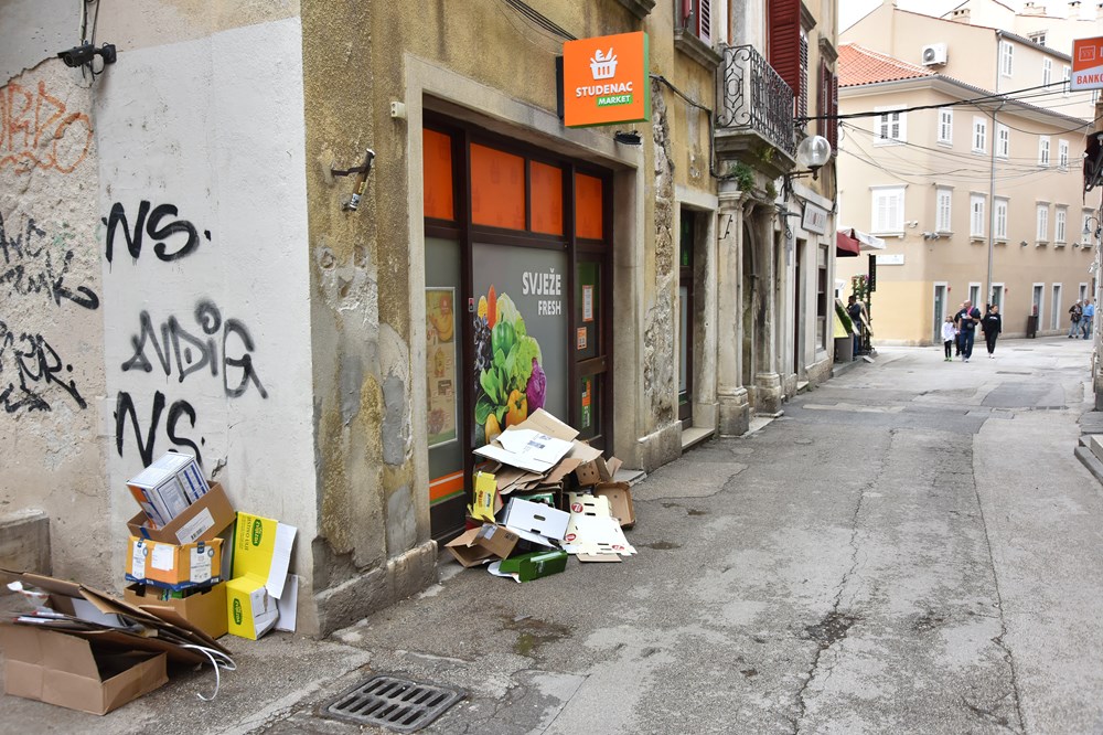 Oči bode, nažalost, kartonska ambalaža ispred jedne trgovine, koja stvara dojam da je Pula - Napulj.