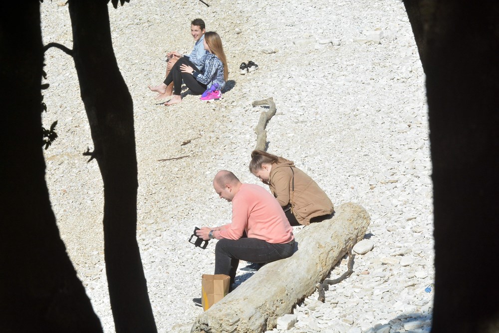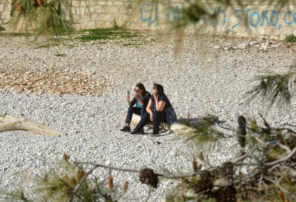 A događalo se nije mnogo toga. Ljudi uglavnom poštuju mjere opreza donesene zbog koronavirusa i ne grupiraju se u velike skupine. Uglavnom su to parovi ili uže obitelji koje "ubijaju" vrijeme uz more po prekrasnom proljetnom vremenu.