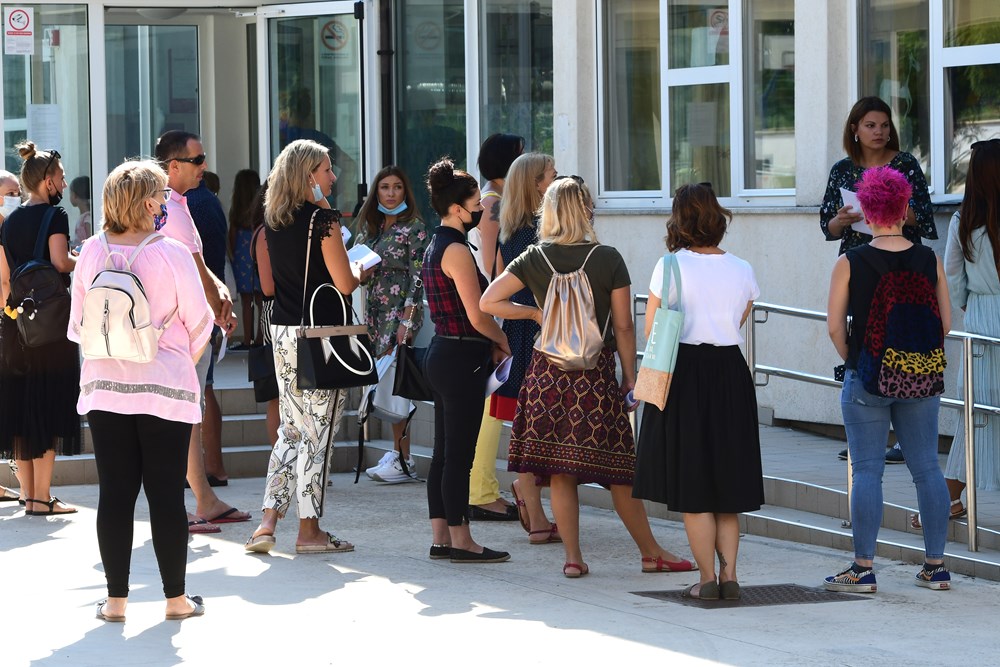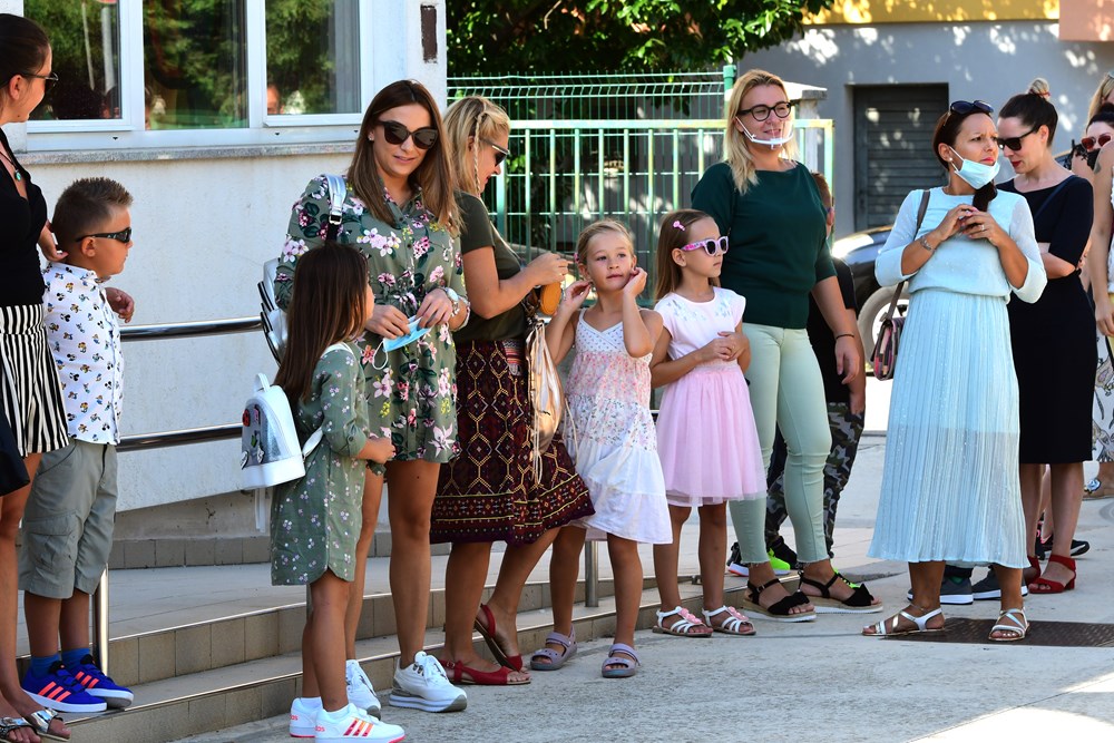 Ali to su srednjoškolci. Malo drugačjije je s osnovcima. Na prvoj prozivci prvašića u OŠ Veruda, na primjer, pazilo se na međusobni razmak.