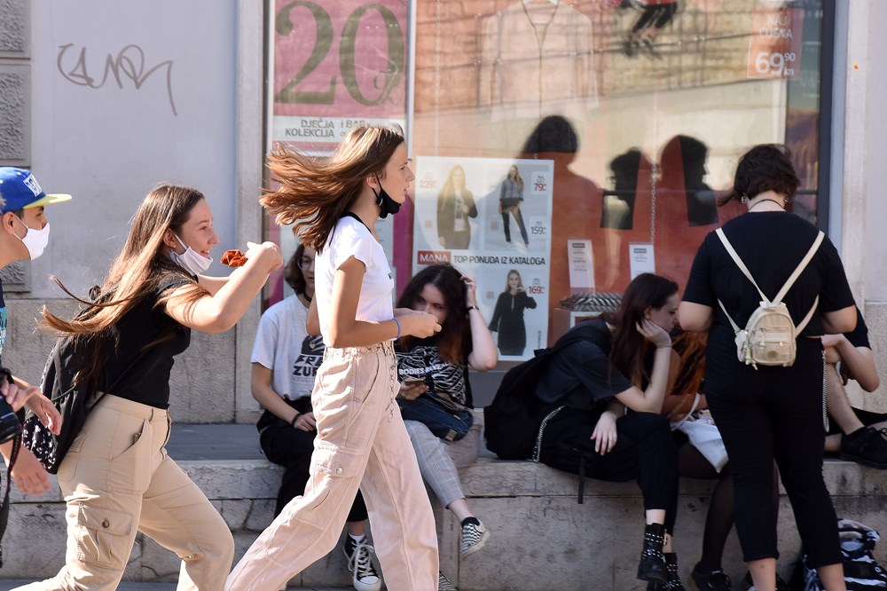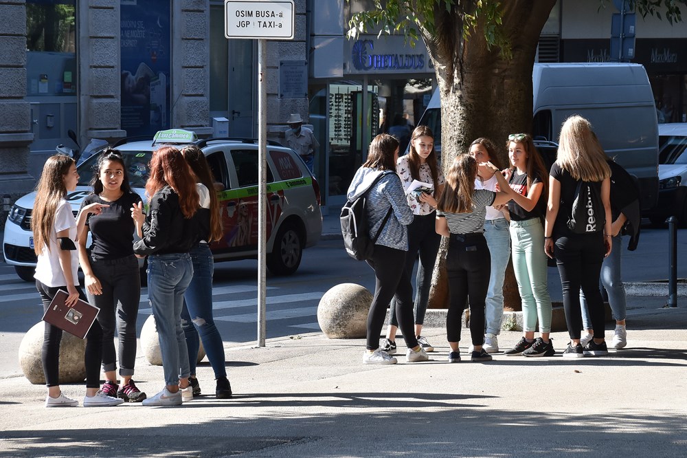 Stigao je i prvi dan korona-škole. U Puli se na ulicama baš i ne vidi da su neke posebne okolnosti. Mladi se okupljaju na sve strane, približavaju, razgovaraju...