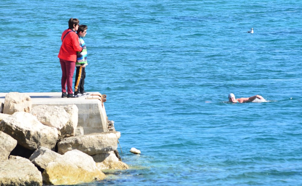 Pulskim zimskim kupačima (ako je ovo uopće još uvijek zima) ne smeta koronavirus - oni su na Mornaru i uživaju.