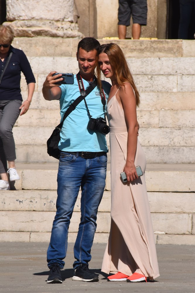 Grad je još uvijek pun turista. Najživlje je danas prijepodne bilo oko Foruma: brojni domaći i strani turisti koji su obilazili pulske znamenitosti, a požaliti se ne mogu ni ugostitelji jer su terase lokala još uvijek pune.