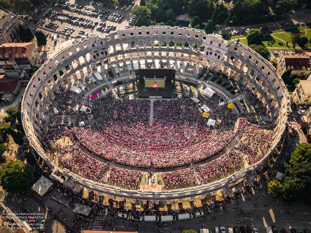 Kalendar otvara noćni pogled na dvijetisućljetnu pulsku ljepoticu Arenu okupanu toplim žućkastim svjetlom zbog kojeg izgleda kao da je od zlata, a ne od kamenih gromada.