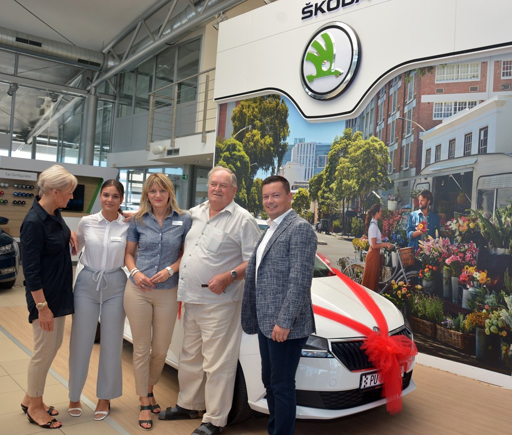 Rashlađenim pjenušcem sretnu vožnju i dalje te dobro zdravlje dobitniku Boži Djakoviću zaželjeli su Mirjana Perković Melon iz Glasa Istre, Hrvoje Berek, voditelj tvrtke Porsche Istra te Kristina Kuzmić i Karla Goršćak iz Škoda salona.