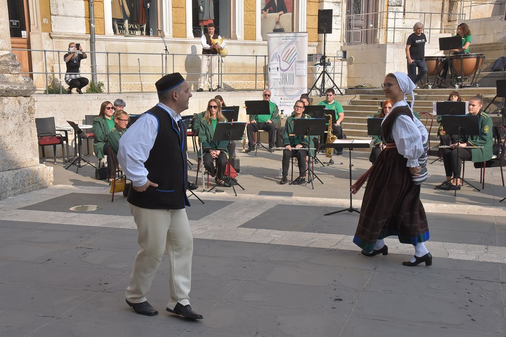 Subotnje osunčano jutro u centru grada bilo je oplemenjeno glazbom. U isto vrijeme na dvije lokacije održani su koncerti. Na Portarati su sudjelovati članice SAKUD-a, KUD „Uljanik“ i Puhački orkestar grada Pule s dirigentom Brankom Okmacom. Nakon nastupa KUD-a pulski je orkestar je publiku zabavio uvijek rado slušanim evergrinima.