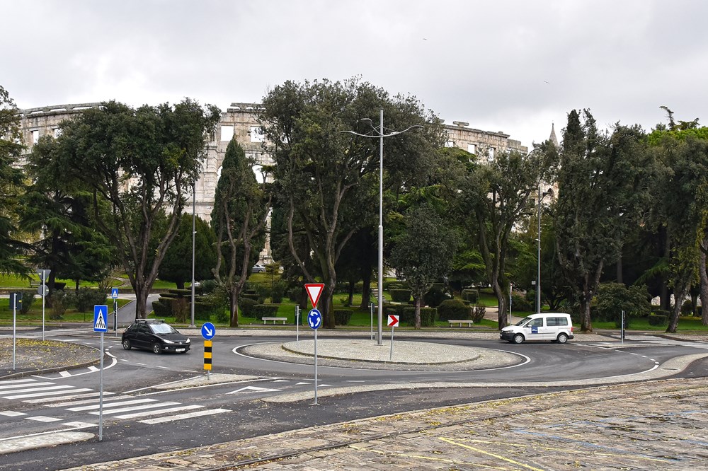 Također, uređen je prolaz između Stiglicheve i Faverijske - prometna površina, oborinska odvodnja i javna rasvjeta, uz postavljanje nove okomite i horizontalne prometne signalizacije. Uređeno je i makadamsko parkiralište u Gladijatorskoj ulici, u Akvilejskom prilazu su obilježena nova parkirališna mjesta, postavljena prometna signalizacija te "ležeći policajci" na dijelu Ulice Poljana sv. Martina ispred škole Tone Peruška. Odgovarajući zahtjevima novih tehnologija, na parkiralištu Karolina podno Arene u pogonu je stanica za punjenje električnih vozila, a osim automobila tu se mogu puniti i električni bicikli. Pula se sve više okreće ekološki prihvatljivijim izvorima energije, a simbolična je i pozicija stanice koja povezuje drevnu Arenu i ekološki prihvatljive tehnologije. Naplata punjenja vrši se beskontaktnom prepaid karticom, SMS porukom ili izravno na blagajni parkirališta.