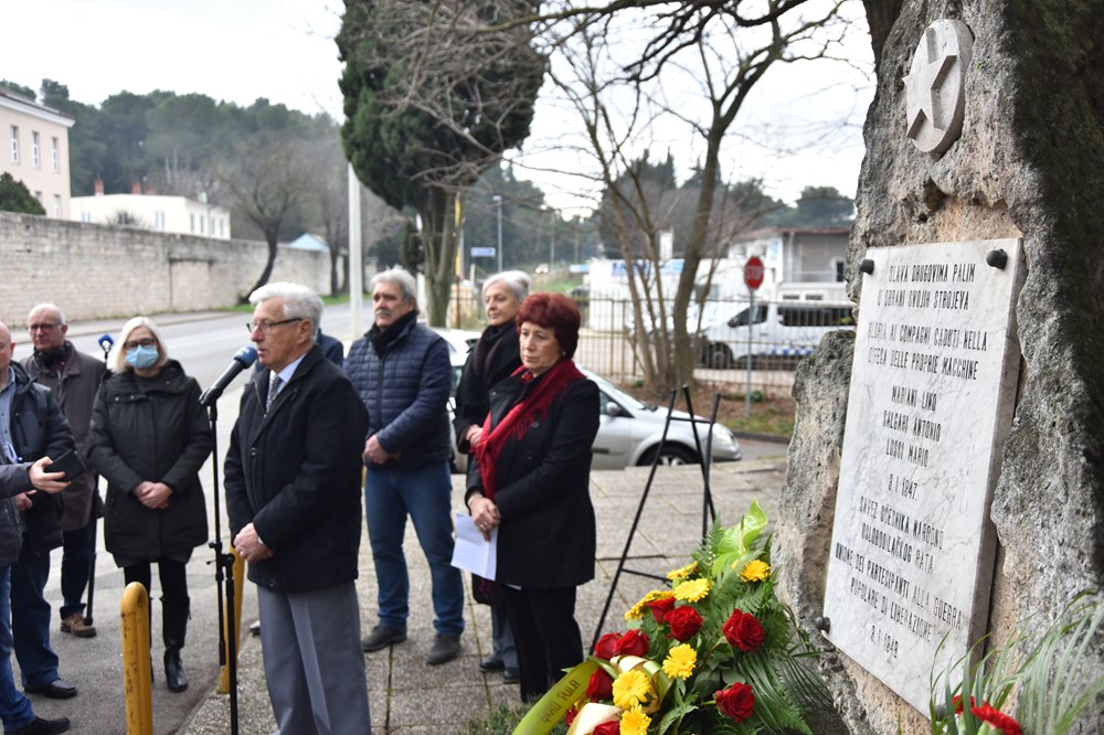 U povodu 75. obljetnice pogibije pulskih antifašista Lina Mariania, Salgari Antonia i Lussi Maria danas su na spomen obilježje u Tršćanskoj ulici položeni vijenci na mjesto gdje su trojica izgubili živote čuvajući strojeve tadašnjeg elektro mlina "Sansa" koji su trebali biti odvezeni u Italiju.