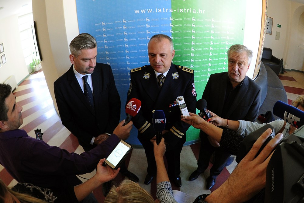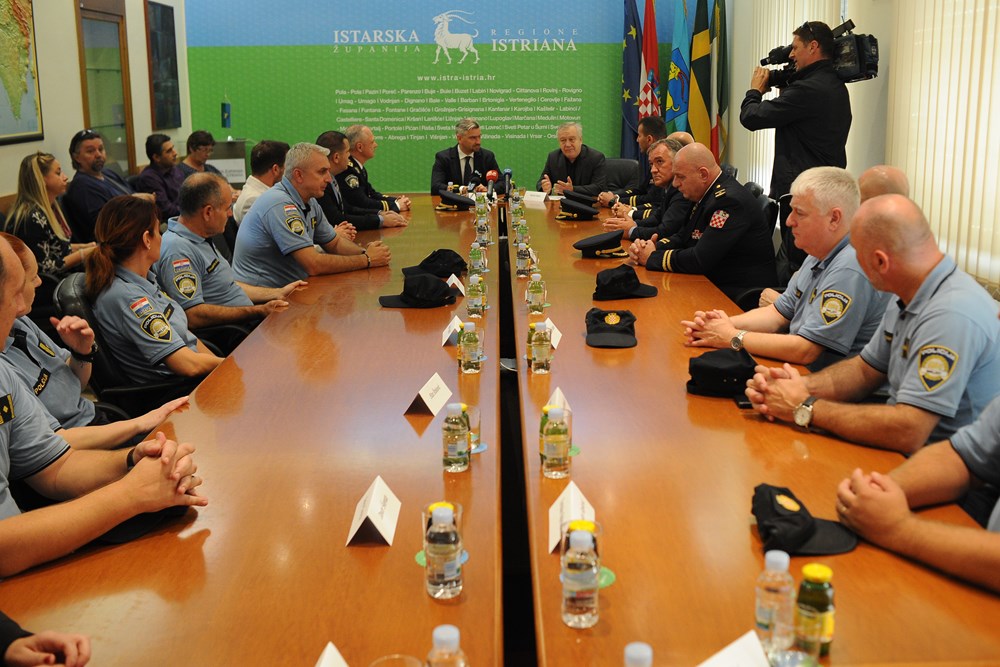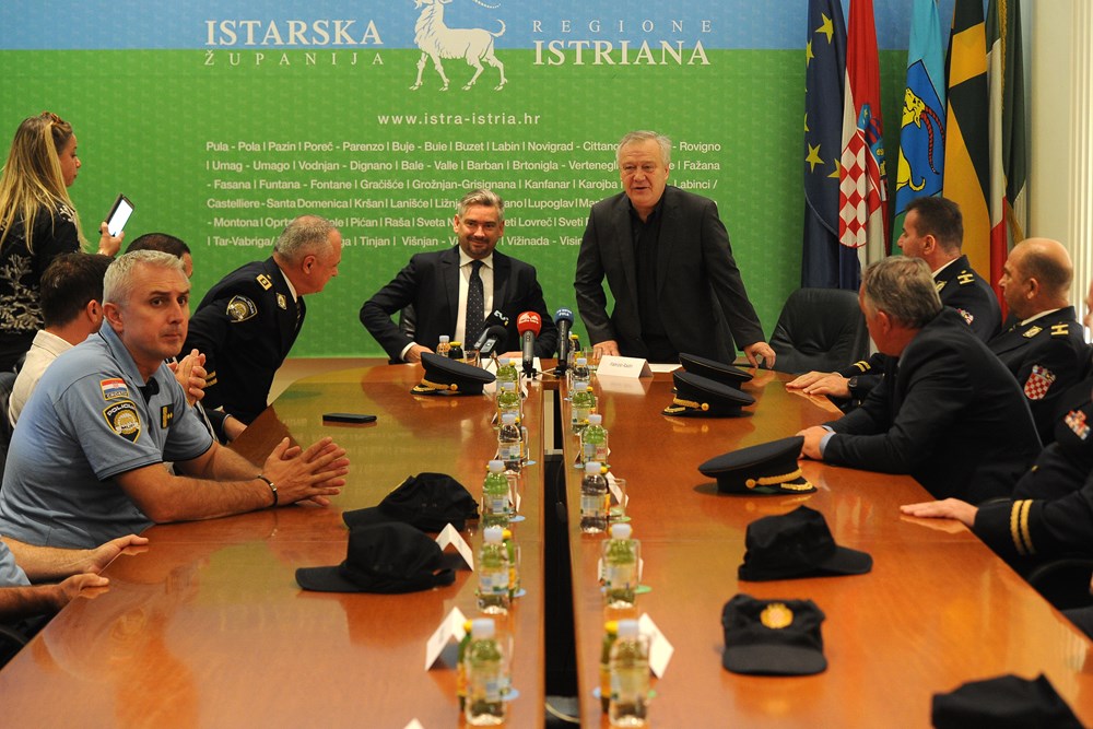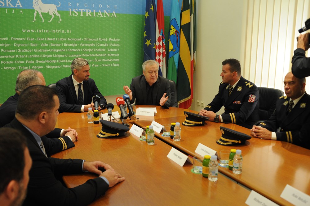 Povodom obilježavanja Dana policije obnašatelj dužnosti župana Fabrizio Radin i pulski gradonačelnik Boris Miletić primili su danas načelnike istarskih policijskih uprava i načelnike sektora predvođene načelnikom Policijske uprave istarske Božom Kirinom. Kirin je konstatirao da je Istra sigurna regija o čemu svjedoče pokazatelji za prvih osam mjeseci ove godine.