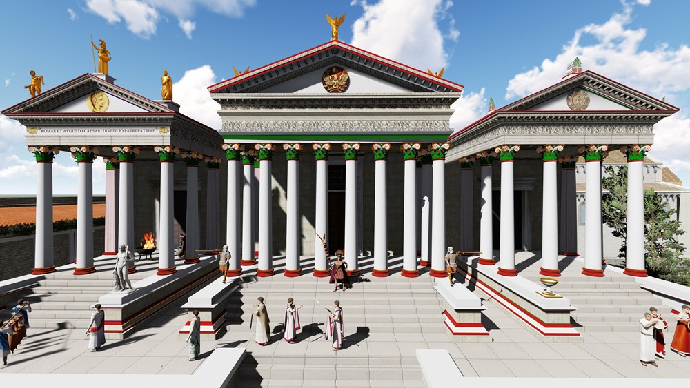 "Forum i hramovi su bili najzahtjevniji dio posla. Kapitol je centralni vjerski dio, u pravilu na povišenom mjestu na forumu. Ovaj se sastoji od dva hrama i središnje zgrade Kapitolija. Na lijevoj strani od Kapitolija je bio Augustov hram, na desnoj hram božice lova Dijane", ilustrira.