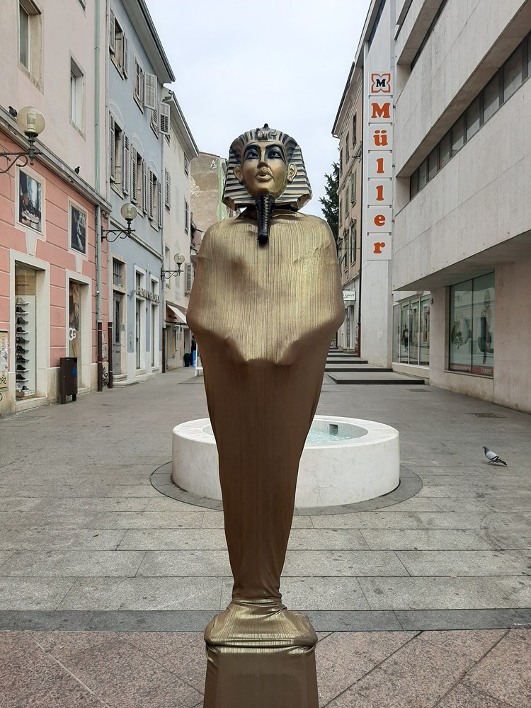 "Znaš što je najvažnija stvar u životu?", pita ulični svirač s leptir mašnom ispred izloga bivšeg dječjeg Benettona (koji je istog dana izlicitiran za vrtoglavih 31 tisuću kuna mjesečno) i odmah odgovara "Mater!". Pa naravno. Faraon pak ništa ne pita. Niti ne odgovara. Samo se stavljanjem novčića u šeširić na cesti duboko nakloni na pohvalu njegovog rada. Pitamo ga koliko će još boraviti u Puli, tiho odgovara kroz masku faraonsku ( gdje ćeš bolje zaštite) - "Još malo".