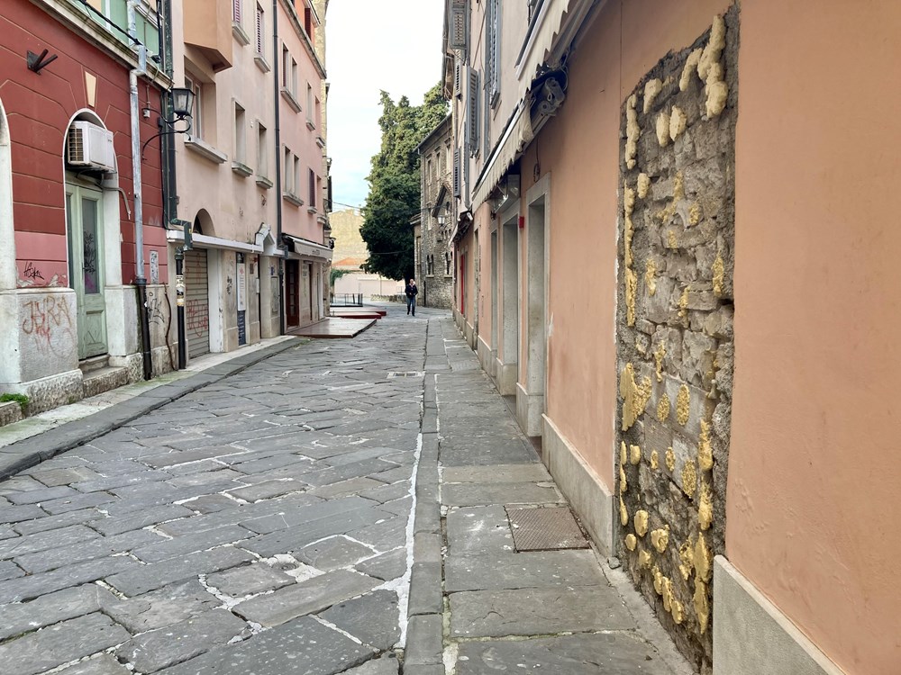 Krenemo li iz smjera Kandlerove ulice najprije nailazimo na zatvorena vrata sezonskih poslovnih prostora koji prodaju suvenire, onih koji su lani turistima nudili šarene slatkiše, a tu je i nekoliko zatvorenih kafića i restorana, od caffe bara "Cedar" do legendarnog bistroa "Dva ferala". U izlozima papiri, fasade išarane i naružene nakon što su se s njih maknule reklame.