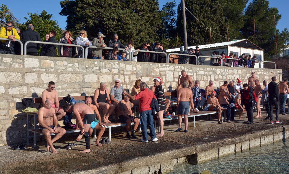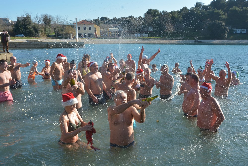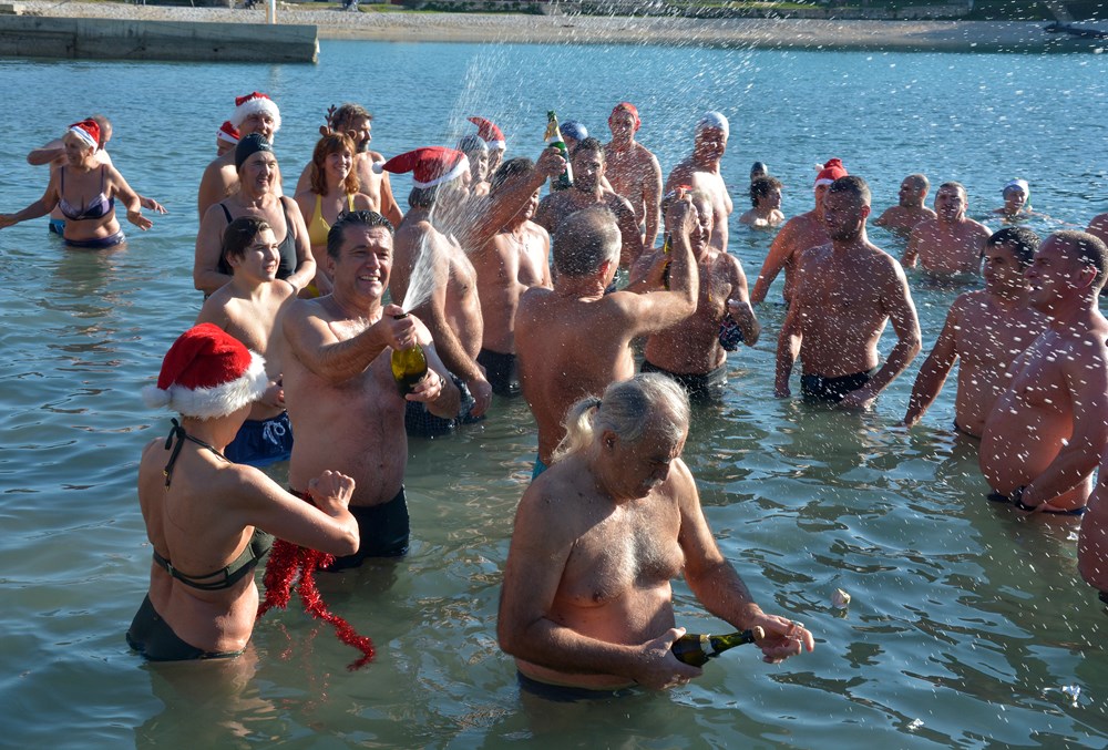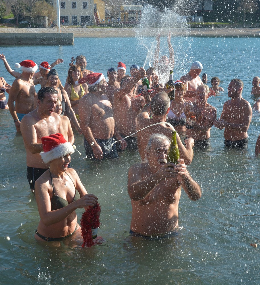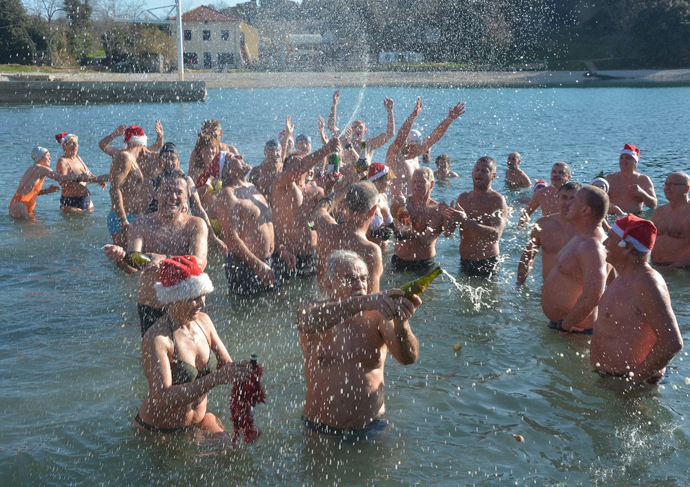Tradicionalnim otvaranjem šampanjca točno u podne, cjelogodišnji kupači na Mornaru nazdravili su novoj, 2020. godini. Počašćeni lijepim vremenom u more ih se "bacilo" više od pedeset - od tinejdžera pa sve do onih koji su ušli u deveto desetljeće života.