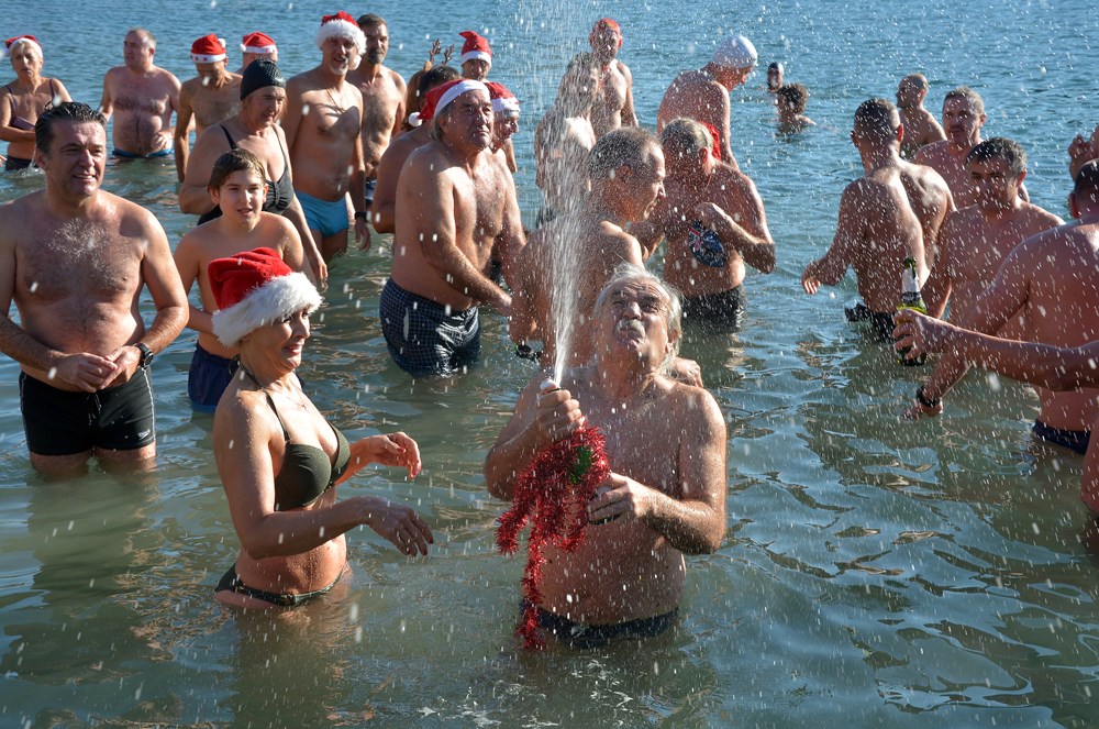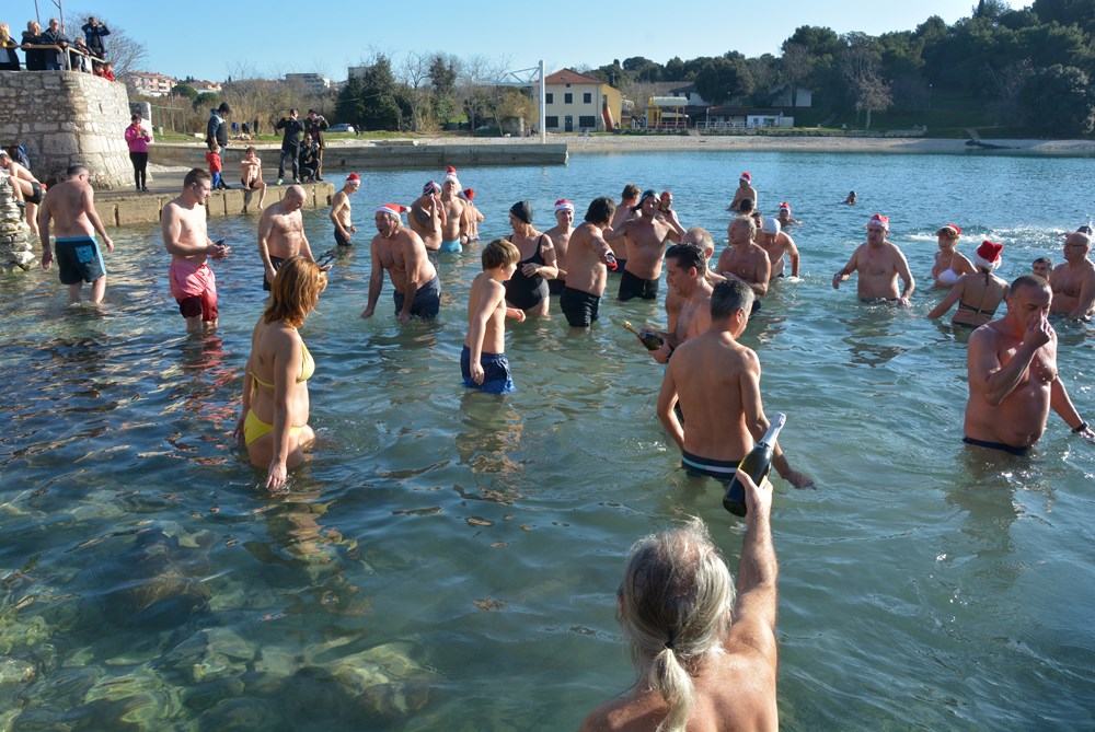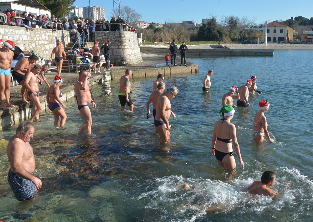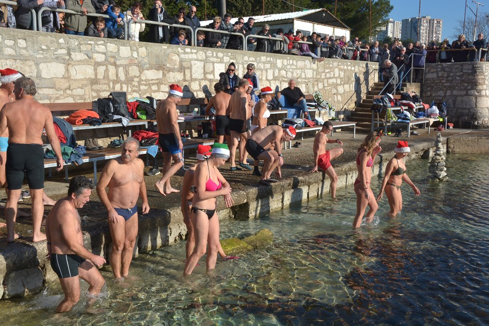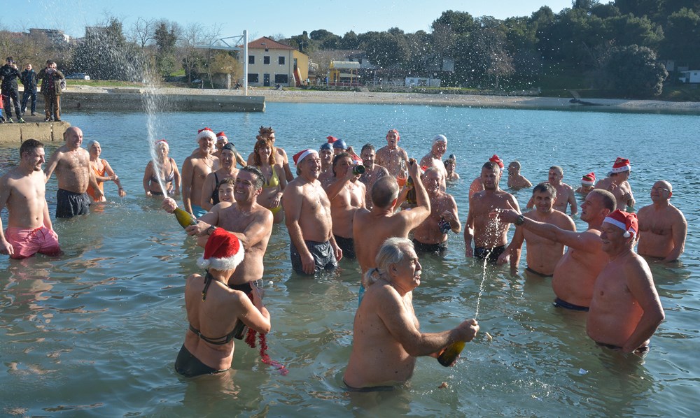 Tradicionalnim otvaranjem šampanjca točno u podne, cjelogodišnji kupači na Mornaru nazdravili su novoj, 2020. godini. Počašćeni lijepim vremenom u more ih se "bacilo" više od pedeset - od tinejdžera pa sve do onih koji su ušli u deveto desetljeće života.