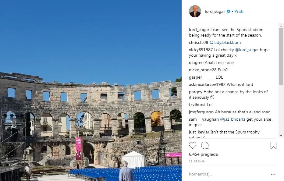 Lord Alan Sugar, britanski milijarder, glavna faca BBC-evog "Pripravnika", kontrovezni lik često prozivan za rasizam i seksizam, tijekom svog odmora posjetio je Hrvatsku, a na svom putu bio je i u najvećem istarskom gradu. Kad je na odmoru, kupuje, troši, i svoja iskustva objavljuje na društvenim mrežama. Ni ovaj put njegove objave nisu prošle bez bure. "Seksist", "rasist", "obriši profil" - samo su neki od komentara koji su popratili njegov doživljaj Pule koji je zdušno podijelio na svom Instagram profilu. Sugar je naime u Puli kupio obitelj drvenih gusaka, jednu "seksističku figuricu" te majicu, koju je zbog naočite prodavačice birao više od 20 minuta, što je izazvalo bijes njegove supruge. No, osebujni milijarder je odvojio vrijeme i za kulturno uzdizanje te posjetio pulsku Arenu gdje je snimio video i objavio ga na svom profilu, a za oko su mu zapele i Uljanikove dizalice u raznim bojama. Budući da njegove objave prati veliki broj ljudi, ispada da su Hrvatska, pa i Istra dobile sasvim solidnu reklamu koja vrijedi puno više nego su u nju uložile. (G. I.)