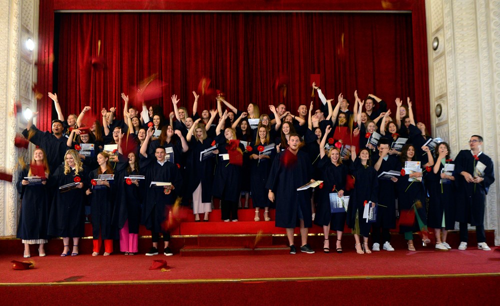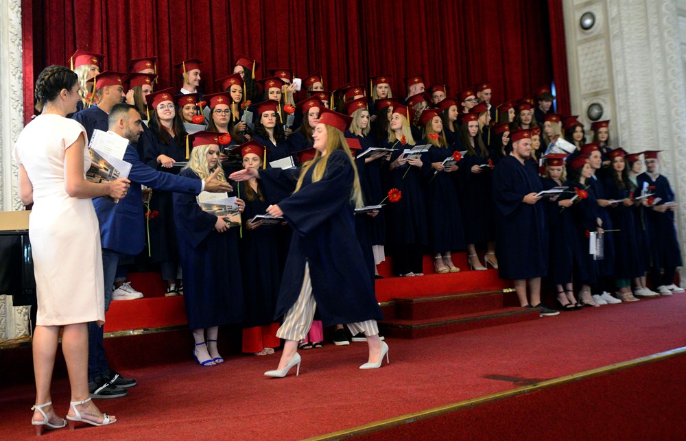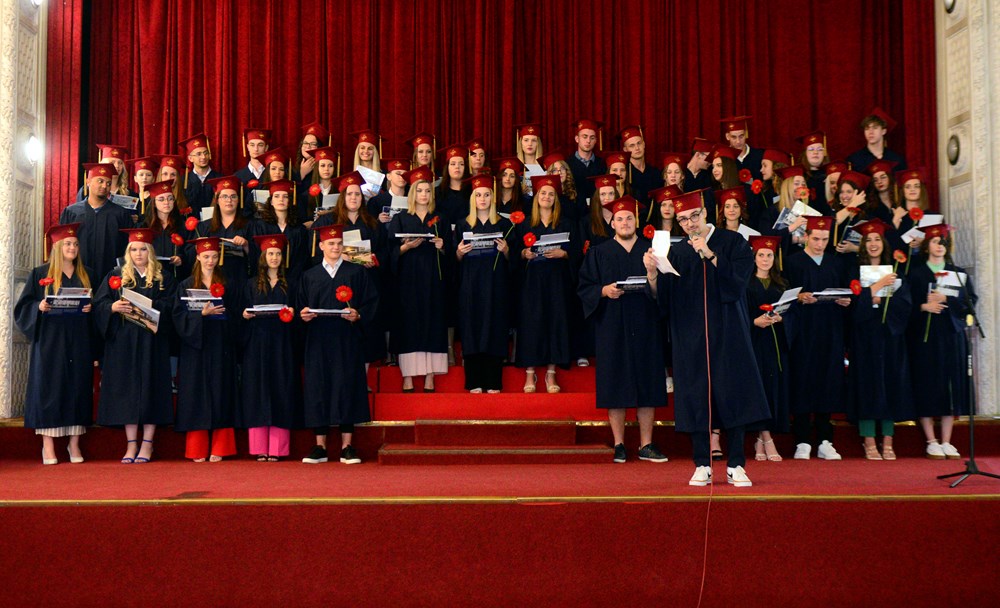 Uz uručenje svjedodžbi, učenici su na poklon dobili i monografiju škole i cvijet, kao trajni podsjetnik na četverogodišnje obrazovanje u toj školi. Potom su otpjevali zajedno s razrednicima "Gaudeamus igitur" - studentsku himnu i za kraj bacili kape u zrak.