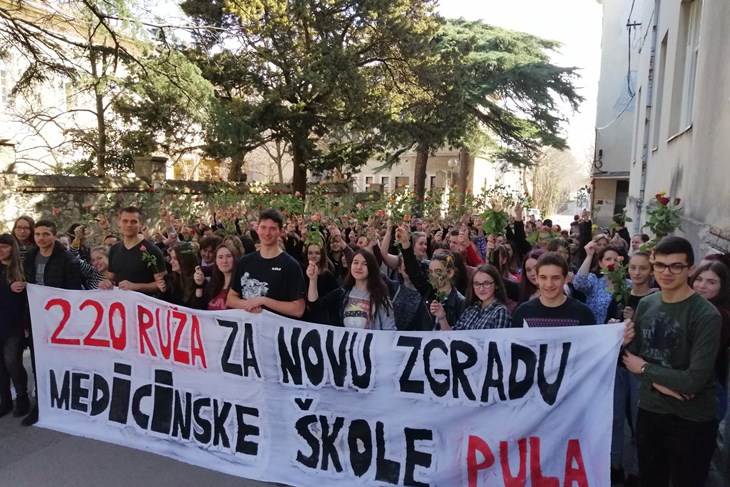 U Medicinskoj školi Pula je zanimljivom gestom obilježen Dan žena. Škola je svakoj djelatnici i učenici darovala po jednu ružu, te je napravljena zajednička fotografija s transparentom: 220 ruža za novu zgradu Medicinske škole Pula. Poruka je simbolična, ilustrira broj pripadnica ženskoga spola u školi, a ukazuje i na vrlo, po Grad Pulu i Istarsku županiju, važno pitanje izgradnje nove zgrade Medicinske škole Pula. Podsjetimo, župan Valter Flego je najavio njezinu gradnju, a projekt je vrijedan blizu 50 milijuna kuna. Na proljeće će biti raspisani natječaji, na jesen krenuti radovi, a koncem 2020. godine bi zgrada trebala biti useljiva. (GI)