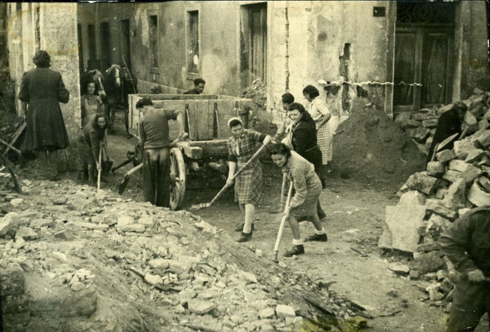 Mnogi su građani golim rukama među ruševinama kopali i tražili predmete koji su im mogli poslužiti, dok su oni drugi to činili da bi izvukli voljenu osobu. Za rad među ruševinama bila je izdana posebna iskaznica, a oni bez nje bili su u opasnosti da budu strijeljani, jednako kao i takozvani šakali, odnosno pljačkaši porušene imovine.
