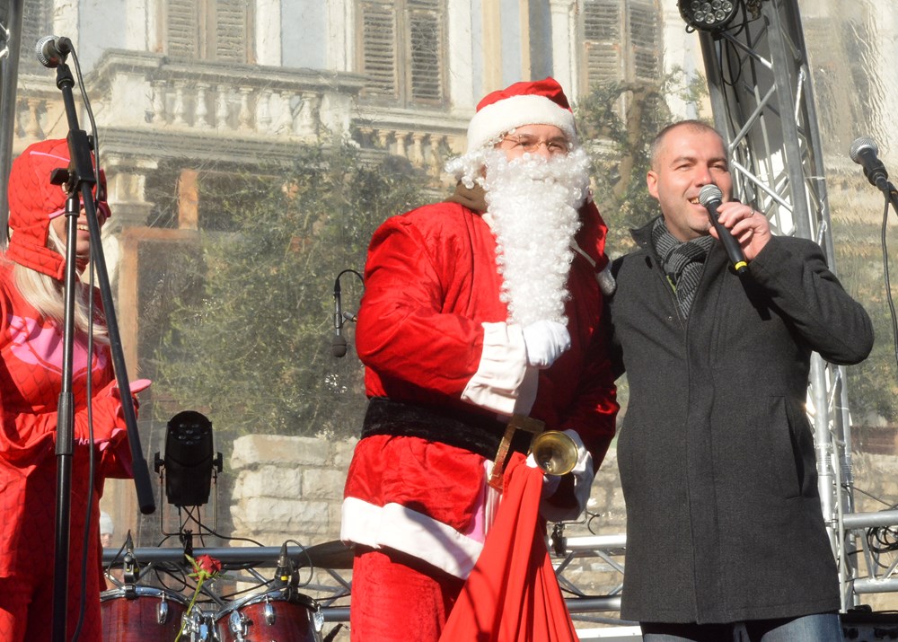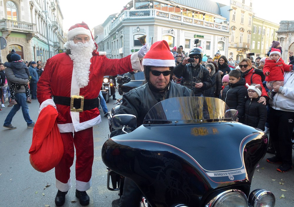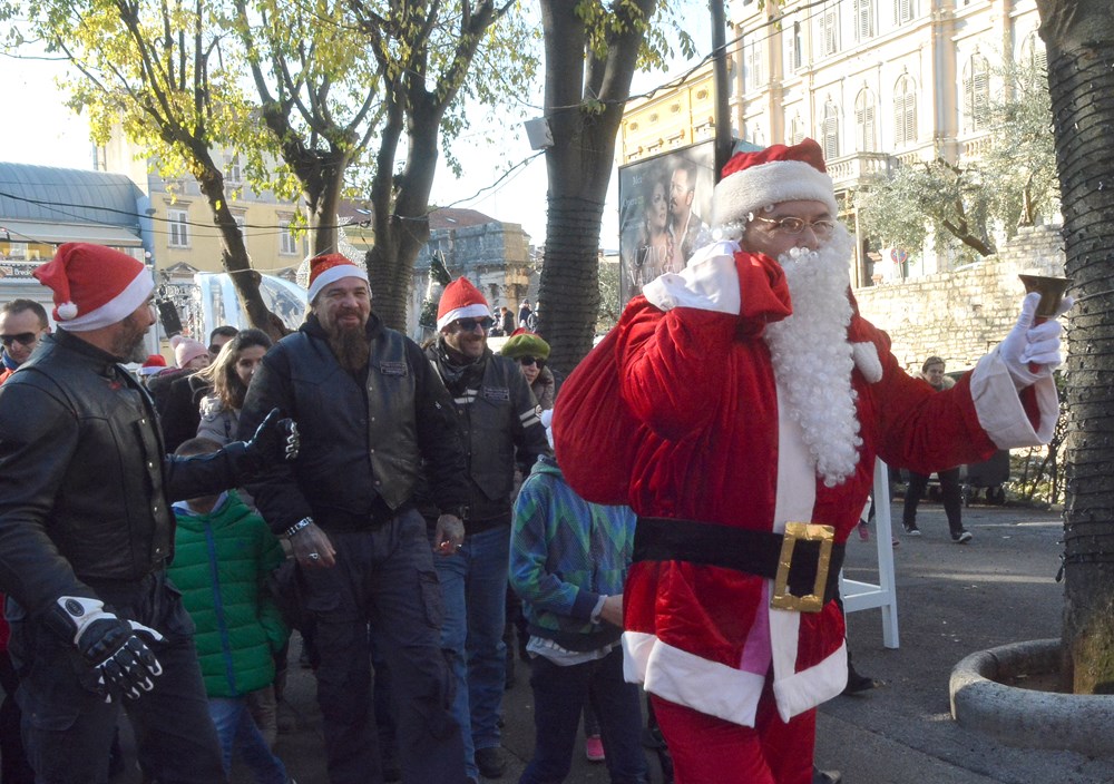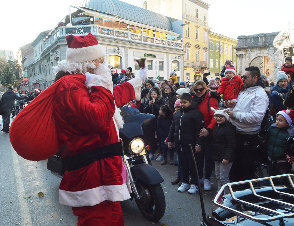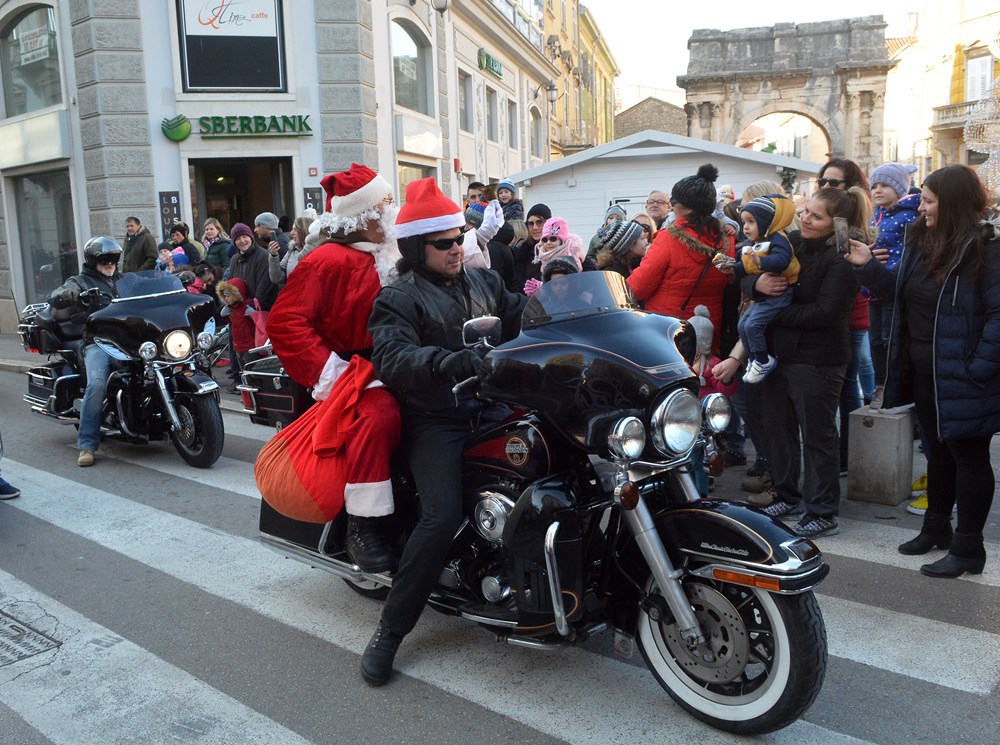 Evo ga! Evo ga! Uzvikivali su mališani jutros na Portarati kada je uz "grmljavinu" motora motorista iz IMC Twin Horn na dva kotača stigao njihov omiljeni djedica. Uz nezaobilazni "Ho ho ho!" Djed Mraz razveselio je sve koji su jutros stigli na Giardine na već tradicionalni doček koji nikog ne ostavlja baš ravnodušnim. Pogotovo one najmlađe. A ni onima starijima nije bilo mrsko pozdraviti Djeda Mraza i dobiti kakav bombončić.