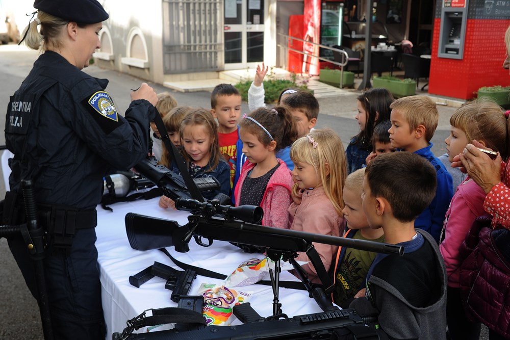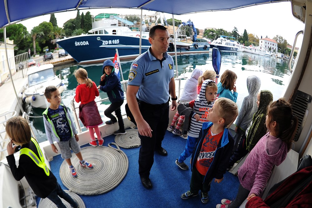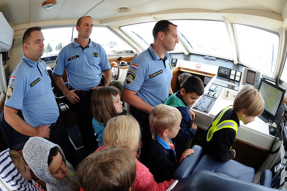 Istarska policija jučer je svoje aktivnosti, kroz program Dan otvorenih vrata u sklopu obilježavanja Dana policije, predstavila pulskoj javnosti pa su i mnoga djeca pohrlila na Karolinu i na Riječki gat da bi sjela na policijski motor ili uhvatila kormilo patrolnog broda.