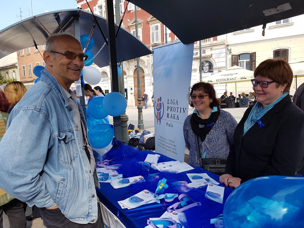 Rak debelog crijeva vodeći je karcinom u Istarskoj županiji, stoga je važno da se građani uključe u Nacionalni program ranog otkrivanja raka debelog crijeva radi prevencije ove bolesti. Program od 2008. provodi Županijski zavod za javno zdravstvo, čiji su stručnjaci danas na pulskoj tržnici, zajedno s pulskom Ligom protiv raka, informirali građane o ovoj bolesti i njenoj prevenciji te ujedno obilježili Svjetski dan osoba sa stomom. Tom su prilikom na posebnom štandu učenici Medicinske škole provjeravali građanima tlak i šećer u krvi, a istovremeno je provedena anketa kako bi se doznalo znaju li građani što je to stoma. Time se želi podržati udruga osoba sa stomom, među kojima je najviše upravo onih s rakom debelog crijeva.