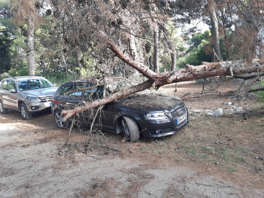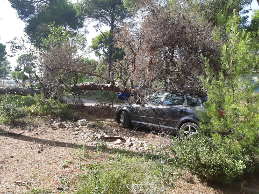 Šuma na Valovinama puna je starih stabala, a jednog kupača koji je došao s automobilom s njemačkim registarskim oznakama poslije kupanja dočekalo je neugodno iznenađenje - jedno stablo se srušilo na automobil.