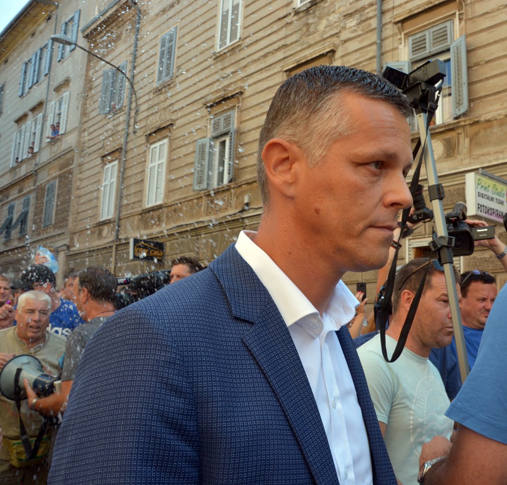9:45 sati Kad je postalo jasno da Miletić nakon što se jučer obratio prosvjednicima danas to ne namjerava učiniti, povorka je nastavila kroz grad prema zgradi Županije gdje bi im se navodno trebao obratiti župan Valter Flego.