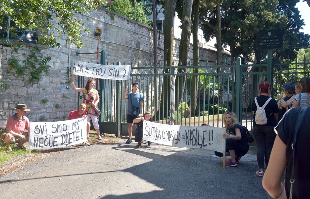 Ova se djevojka, koja se vratila u krug obitelji, danas pridružila prosvjedu pred domom na kojem se okupilo 20-ak Puljana. S transparentima "Šutnja o nasilju jest nasilje" i "Svi smo mi nečije dijete" poručili su da nasilje rađa nasilje te upozorili javnost na neprihvatljivo stanje u ovom, ali i drugim domovima za djecu.