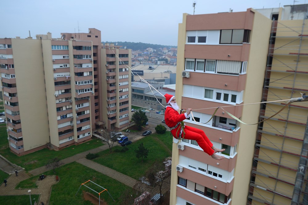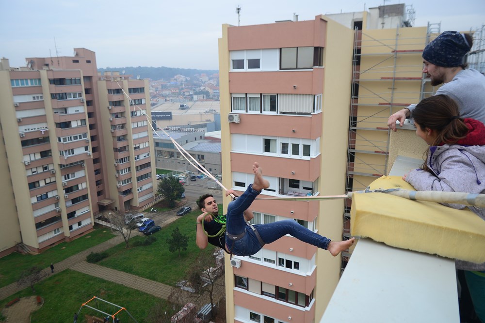 - Tada je jedan par iz Zagreba otišao kod Slovenaca učiti kao se to radi, kako se postavlja gurtna i tada smo krenuli u "obilazak", animirali ljude, zabavljali se i hodali, hodali? Vježbali, gdjegod smo mogli, po Hrvatskoj, Bosni i Hercegovini, Sloveniji, uglavnom po prirodi, iznad kanjona, u kamenolomima, a ovo je prvi put da smo došli pokazati što radimo i u jednom urbanom okruženju, ispričao nam je Mišković pritom se zahvalivši i Gradu Puli, policiji i stanarima zgrada jer su im bez problema izdali suglasnost za ovaj događaj.