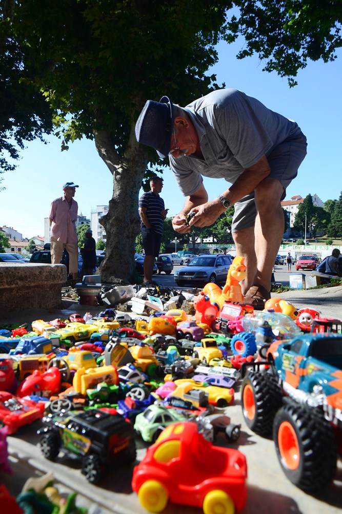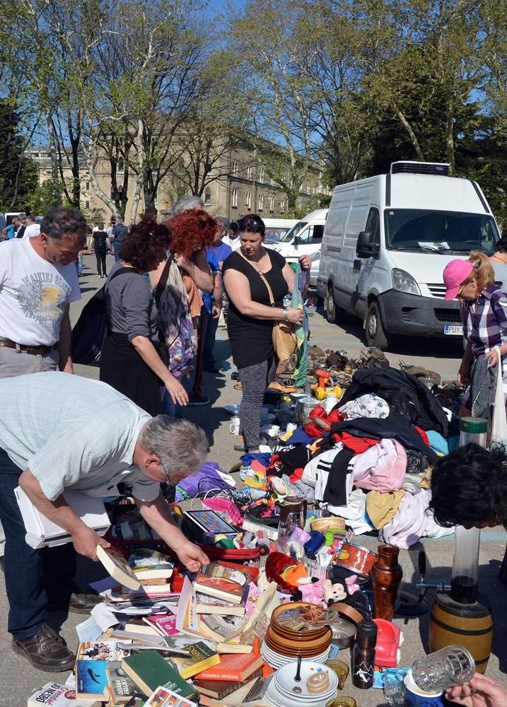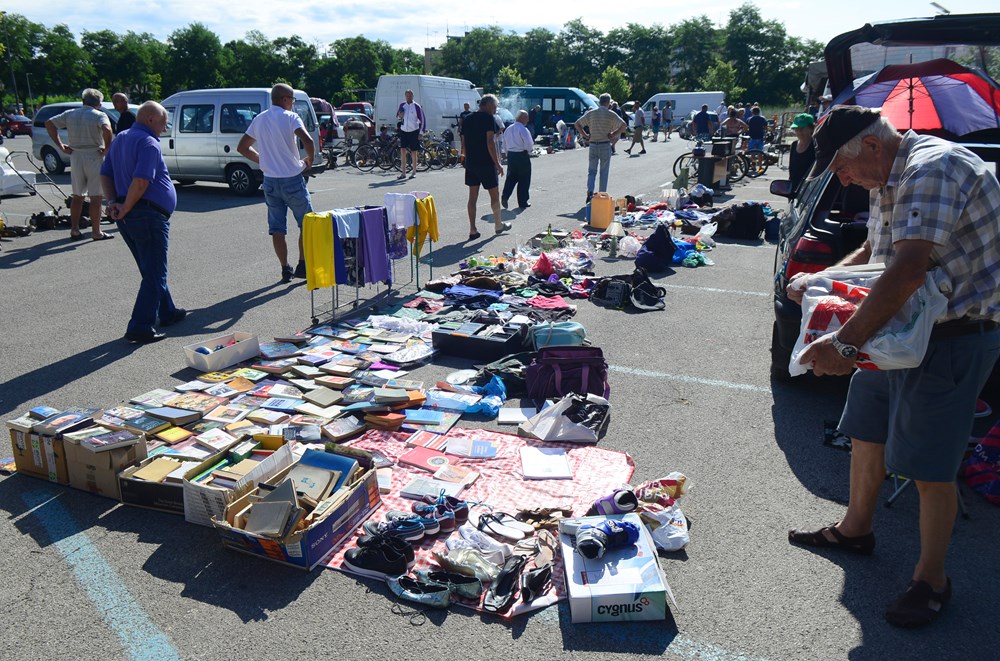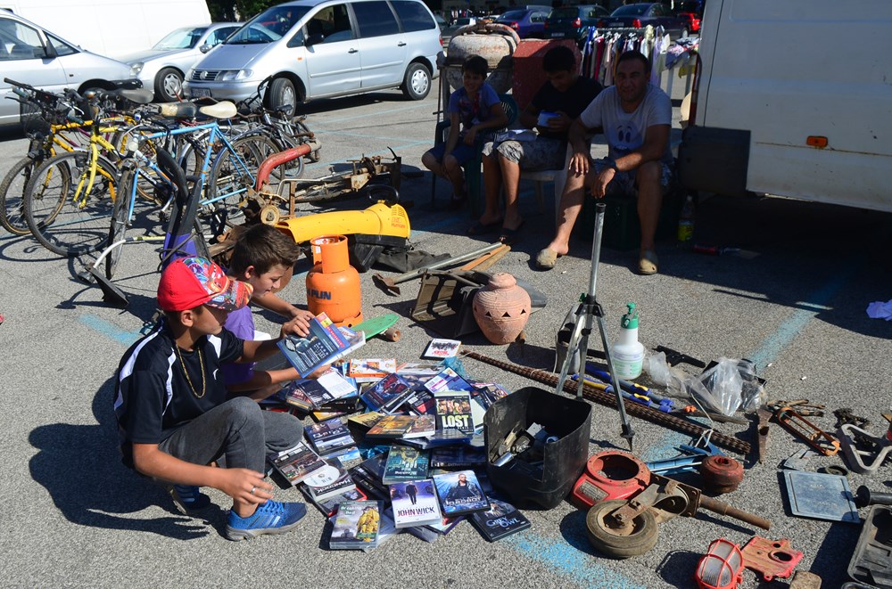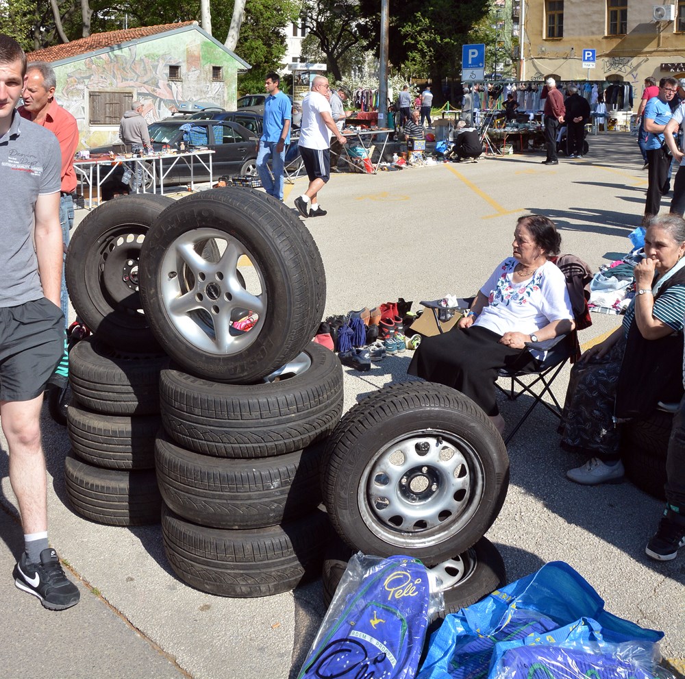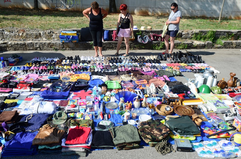 Obilazimo plato ispred Rojca. U 9 sati polako se slaže roba, iz nečije haube trešti narodna glazba, prvi kupci već prebiru po stvarima. Što se proda do podneva, prodalo se, što ne, nudit će se iduće nedjelje! A u ponudi doista ima svega i svačega. Uzrečica "od igle do lokomotive" ovdje poprima novo značenje. Na podu, u haubi automobila, na stepenicama ili na kamionu redaju se nizovi izložene robe: posuđe, odjeća, obuća, kućanski aparati, šalice, lonci, alati svih vrsta, bicikli, romobili, igračke, miješalice, boce i demižane, CD-i pa čak i stare kasete, punjači za mobitele, digitalni fotoaparati, mobiteli, maskice… Ima i automobilskih guma, pisaćih mašina, pa čak i štaka za invalide, a sada u sezoni peraja, maski za ronjenje, kupaćih kostima!