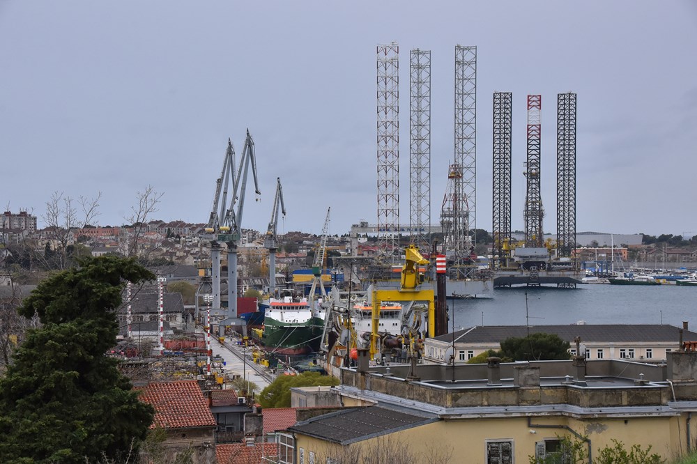 S nekih pozicija čine se posve blizu, tu iza ugla, i svakim danom sve ih je više. Uz staru naftnu platformu vezanu kraj Uljanikovog otoka, koja je već srasla s Pulom, sada još šest željeznih divovskih nogara uzdiže se nam gradom