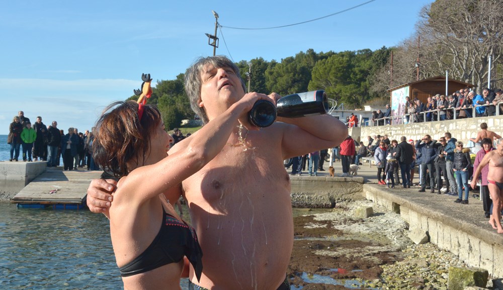Sunce, mirno more, u jatu kao proljeće, gotovo idealna situacija za kupanje. No, usprkos svemu, more je hladno, oko 12 stupnjeva. Zabundani, s kapama na glavi, neki su podozrivo gledali kupače, njih pedesetak, koji su točno u podne i ove godine na Mornaru hrabro ušli u more, u kojem su otvorili pjenušac i nazdravili novoj 2019. godini. "Ma ne znam što bi me natjeralo da uđem sada u vodu", kazala nam je Milica koja je na Mornar došla, kako nam je kazala, uhvatiti malo sunca.